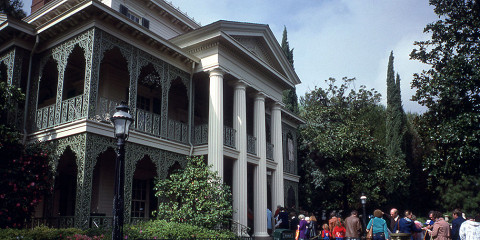 Аттракцион «Особняк с привидениями» представляет собой тур на «смертных повозках». Посетители садятся в кабинки-вагонетки и отправляются в путешествие по комнатам особняка. Их пугают роботы-аниматроники, оптические иллюзии, «живые портреты» и другие спецэффекты.