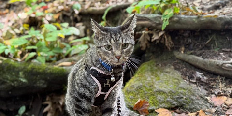 Семья заехала в зоомагазин, чтобы купить для Рэй Рэя рюкзак-переноску, и с тех пор кот стал полноправным участником путешествия. Он преодолел на спине хозяина марафон в Нью-Гэмпшире и полюбовался достопримечательностями Нью-Йорка.