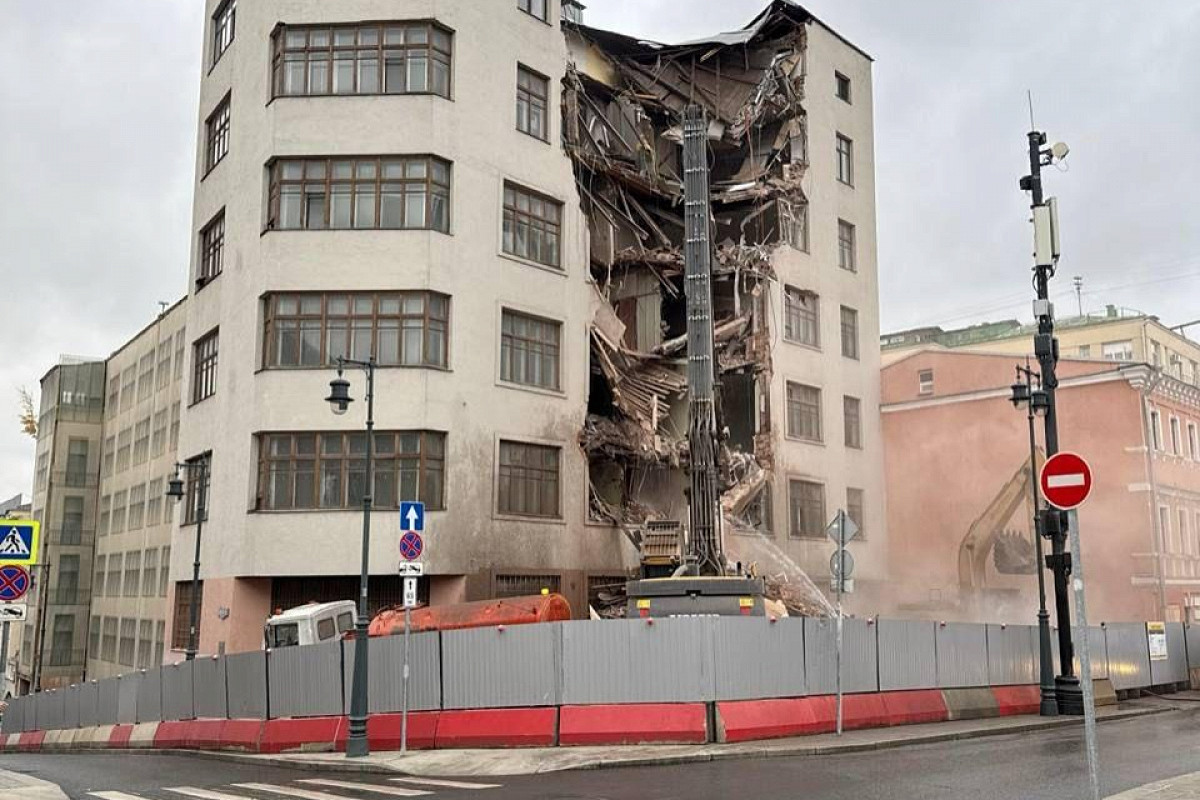 На пересечении Рождественки и Нижнего Кисельного переулка в центре Москвы начали снос дома-коммуны «Изотерма». Об этом в соцсетях сообщил гид Петр Посмаков.