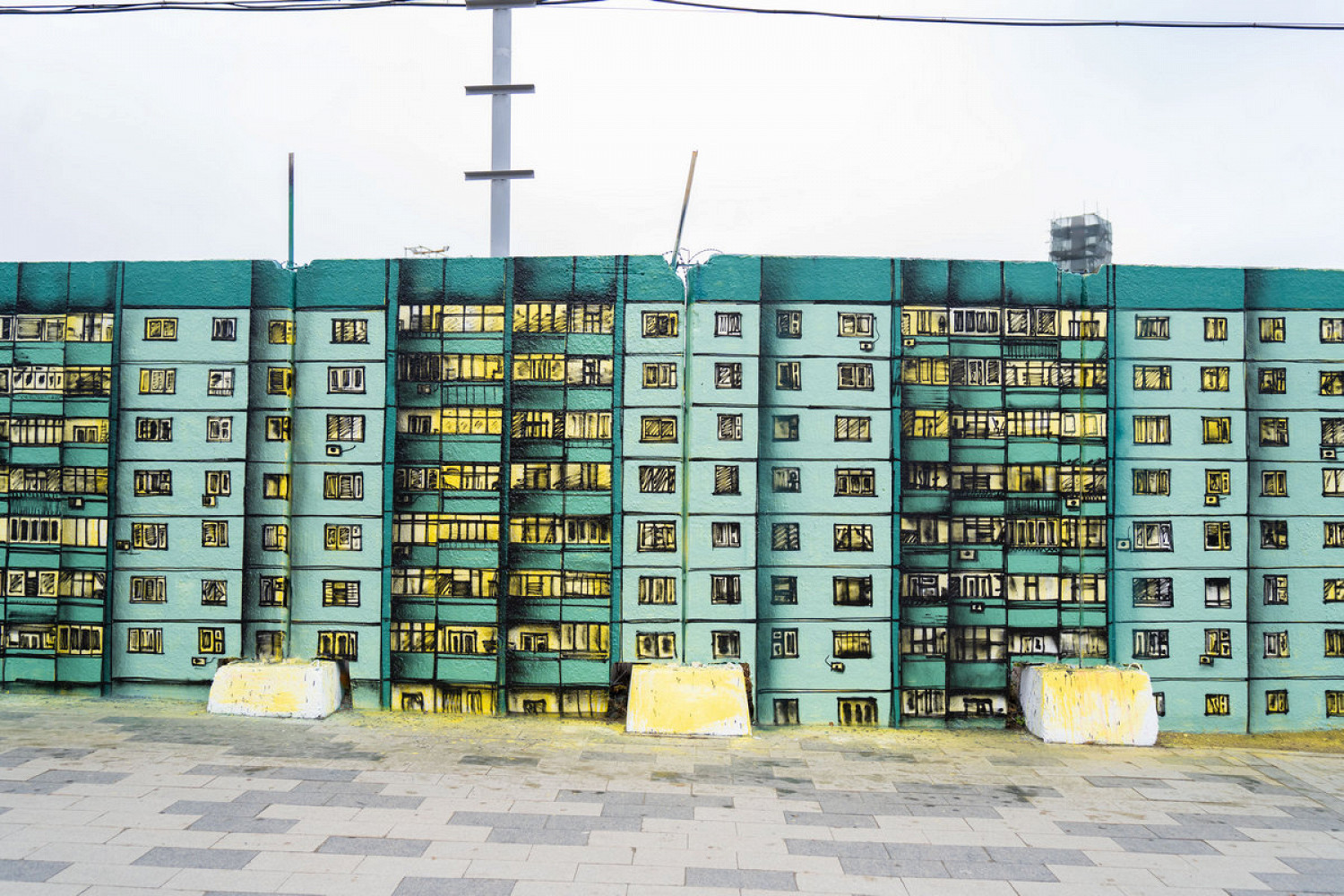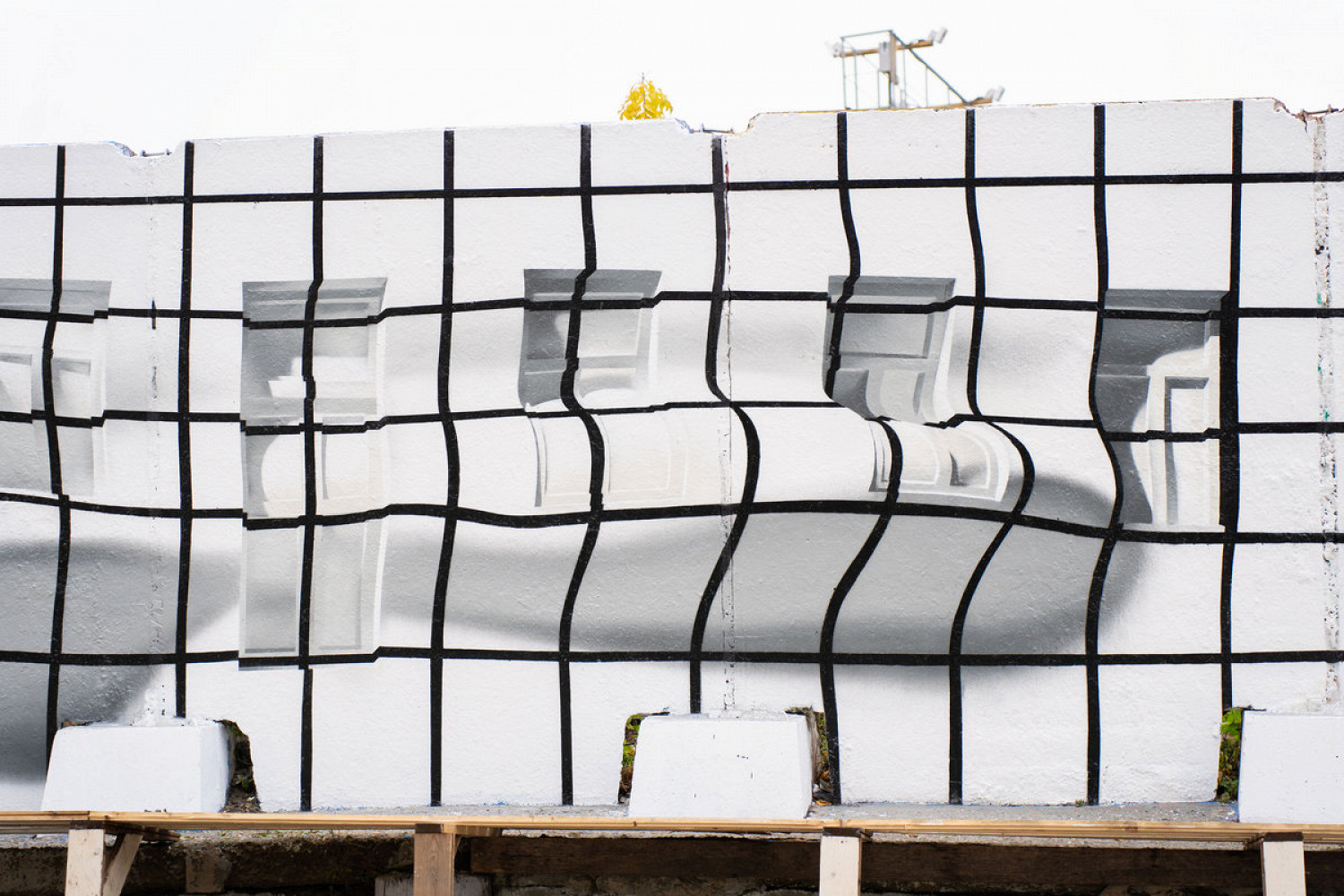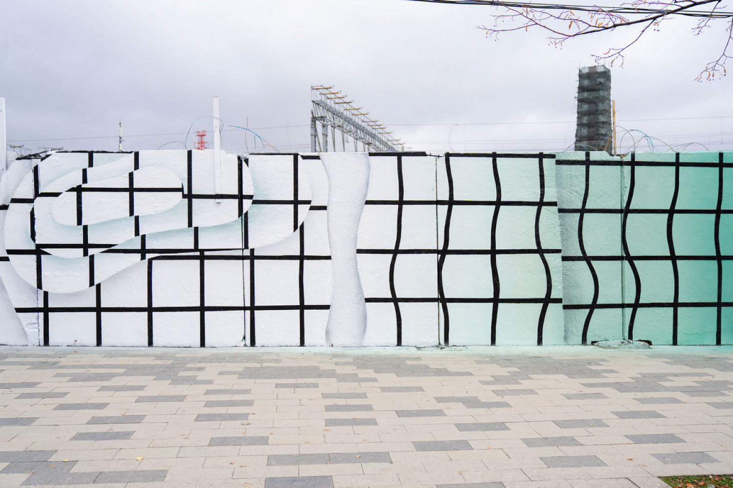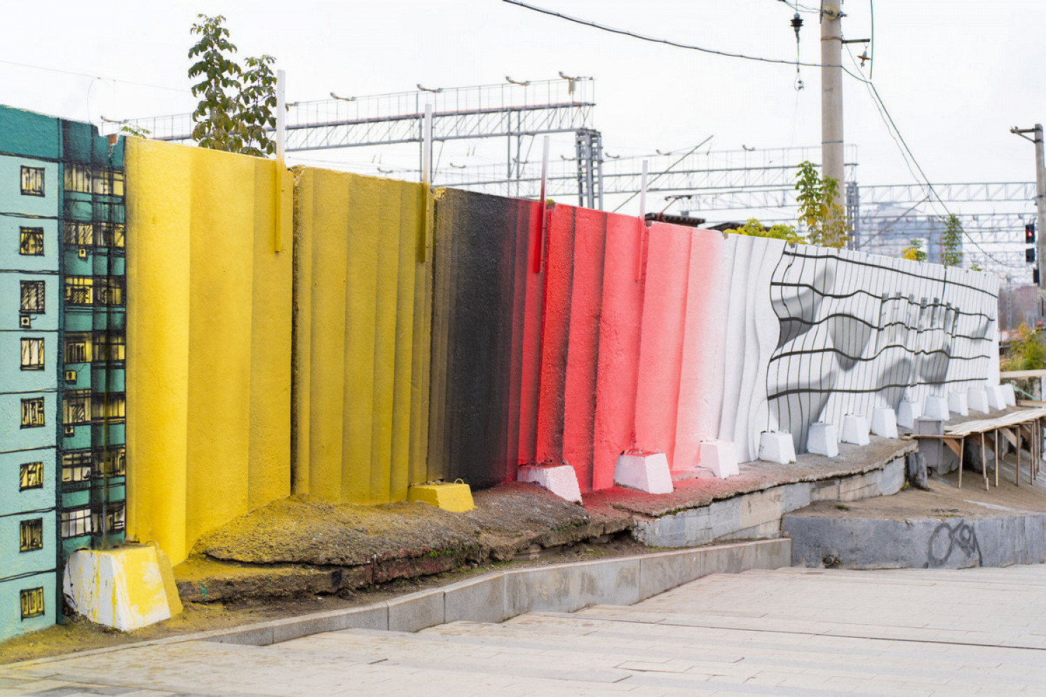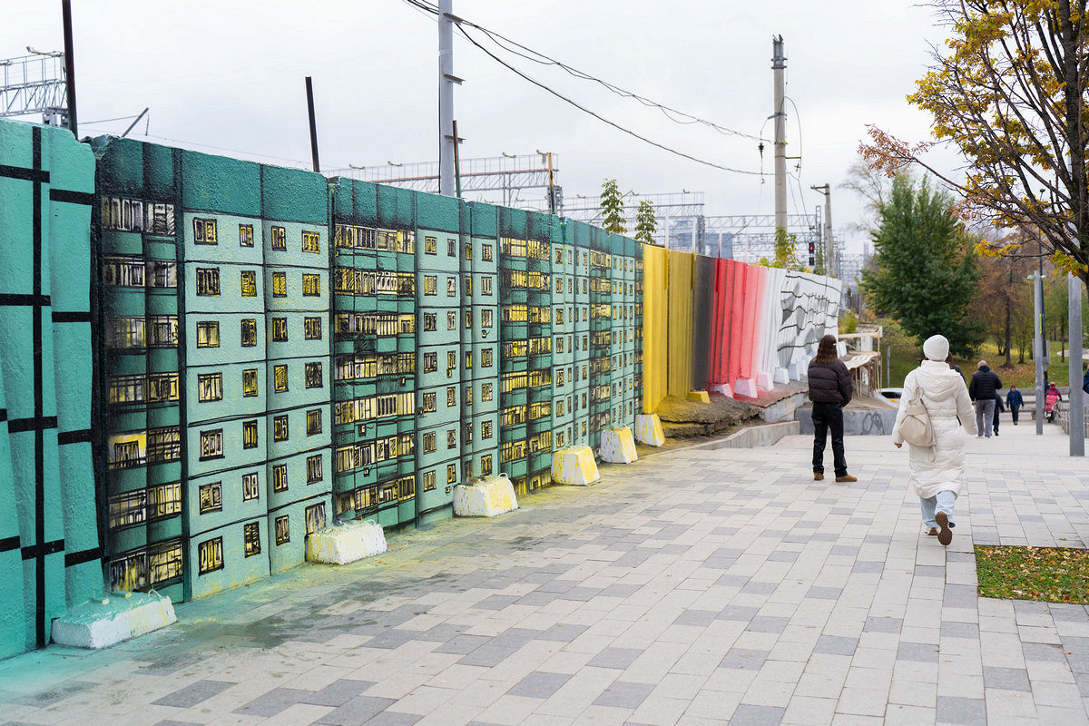 Shozy оформил часть стены в стиле «обманка», создавая оптические иллюзии, где реальность и изображение сливаются. Nikita Dusto переосмыслил образ типового панельного дома, знакомого каждому, кто жил в постсоветском пространстве. Андрей Adno отразил многослойную перспективу города через чередование «каркаса» и «массы», где сеточные линии задают пульс, а объемные формы и цветовые поля ― ударные доли.