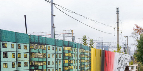 Shozy оформил часть стены в стиле «обманка», создавая оптические иллюзии, где реальность и изображение сливаются. Nikita Dusto переосмыслил образ типового панельного дома, знакомого каждому, кто жил в постсоветском пространстве. Андрей Adno отразил многослойную перспективу города через чередование «каркаса» и «массы», где сеточные линии задают пульс, а объемные формы и цветовые поля ― ударные доли.
