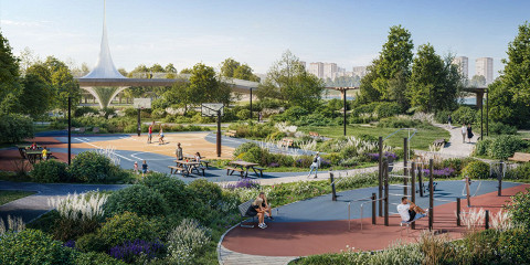 «Новый парк станет частью городского пространства и будет доступен всем жителям столицы», — говорится в пресс-релизе девелопера «Астерус». Его общая площадь составит около 100 тыс. квадратных метров, включая 1,2 километра участка, примыкающего к Москве-реке.