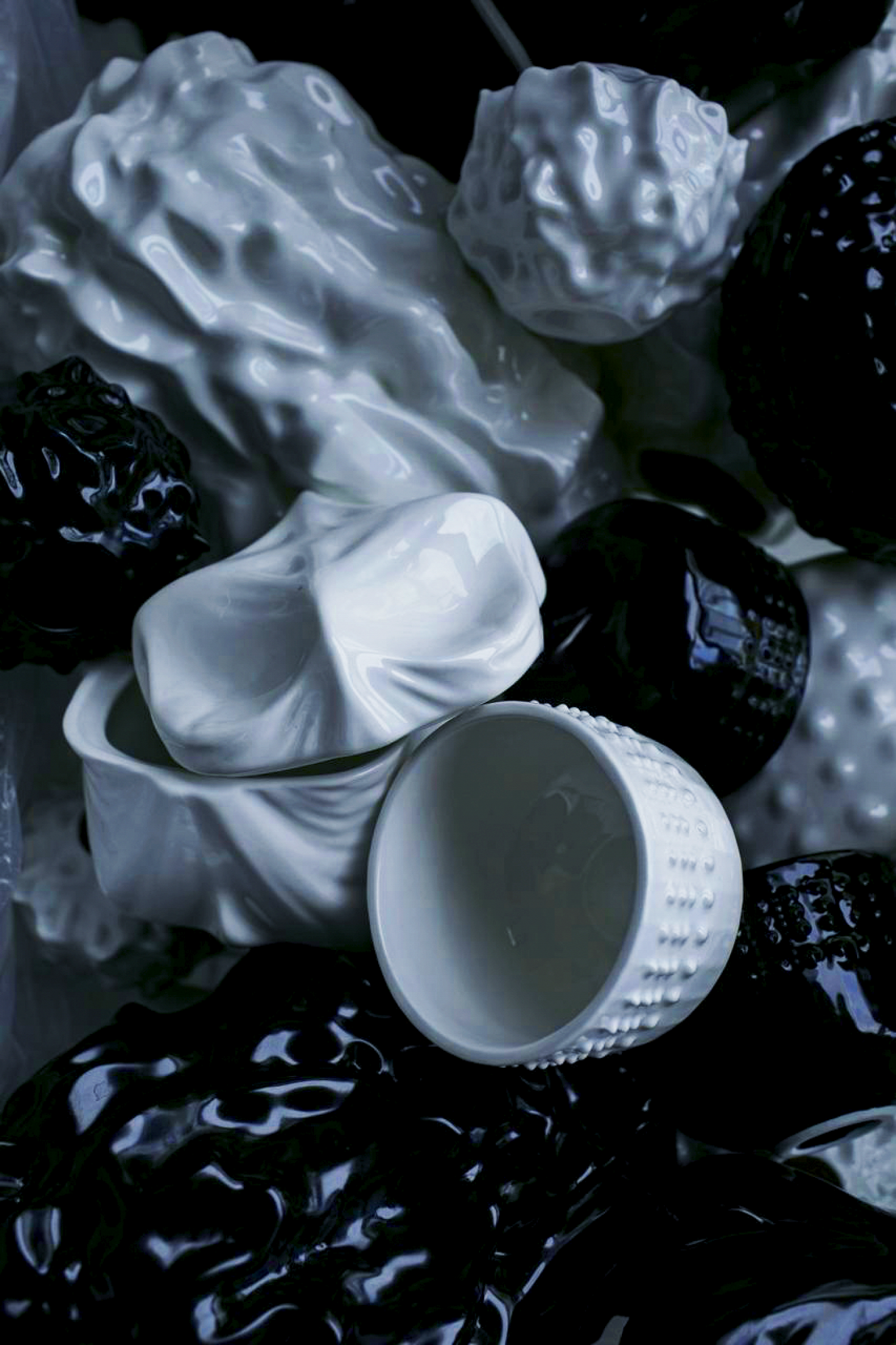Базовая линейка 01001Lab включает вазы, диффузоры, шкатулки и посуду. Создатели бренда Саша Раев и Тося Млинарич соединяют ручное ремесло с цифровыми технологиями. Формы создаются в 3D-моделировании и воплощаются через 3D-печать и литье, а характерные слои печати сохраняются как часть «цифрового почерка».