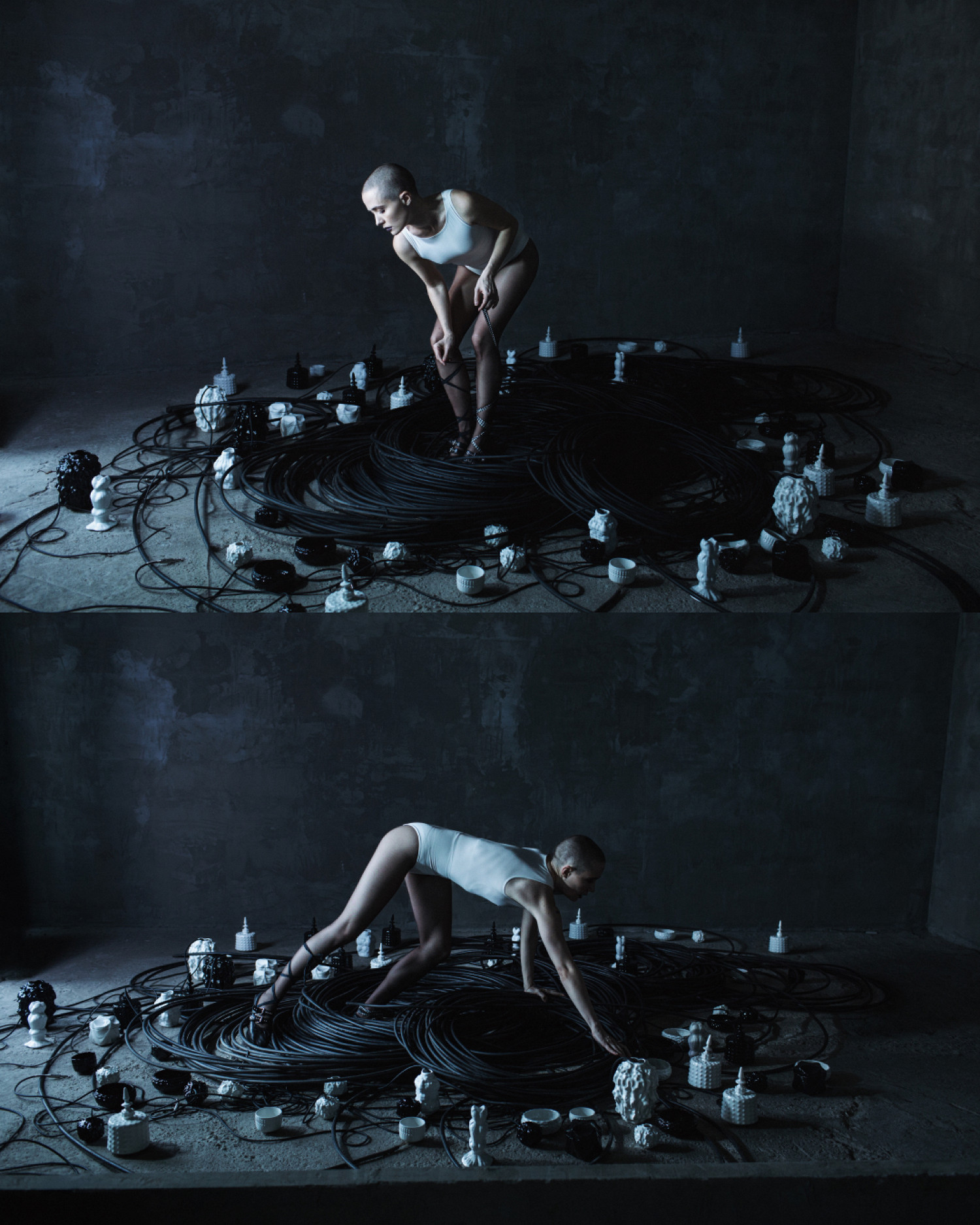 Substrate исследует границы между реальным и цифровым, телесным и механическим. Героями съемки стали Авдотья Александрова (основательница модельного агентства Lumpen) и Тося Млинарич (создатель 01001Lab и 01001011 Studio).