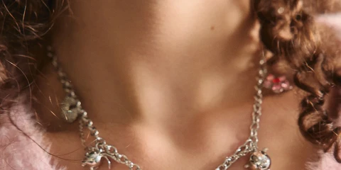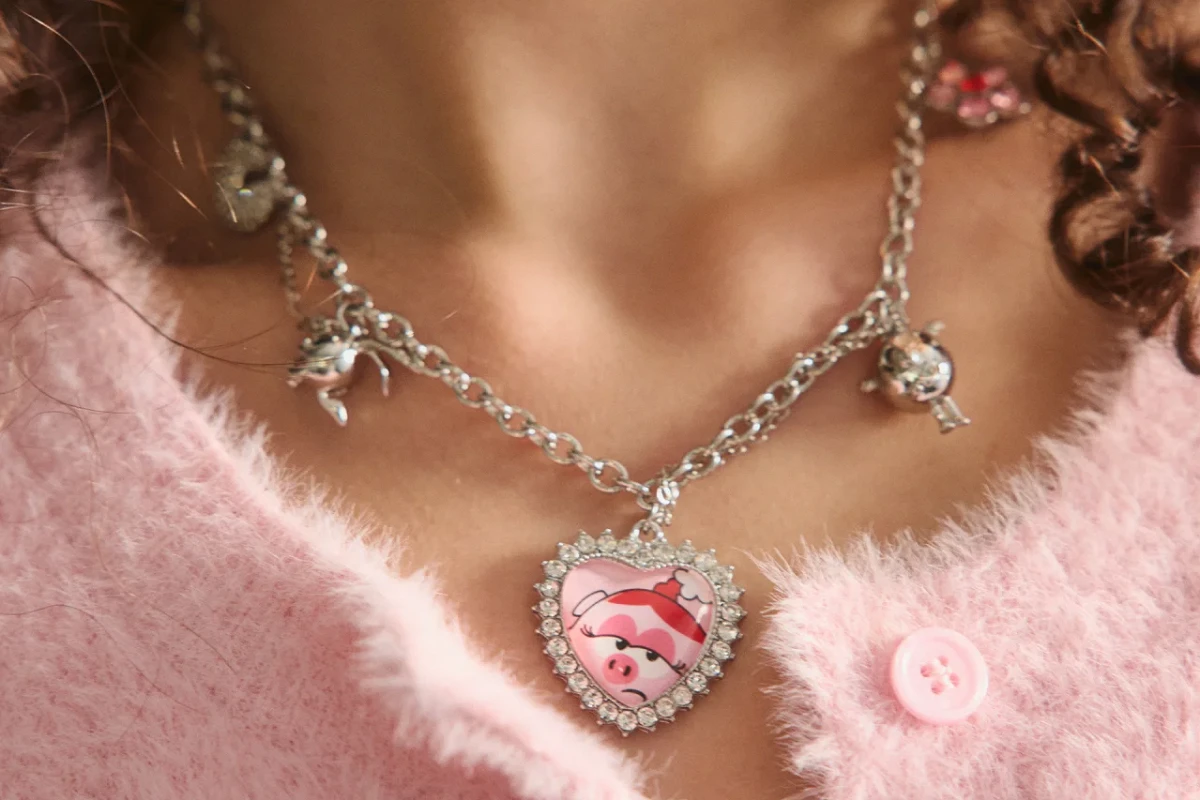 Среди бижутерии — бусы и серьги с Нюшей, а также обвес с зеркальцем и буквой S от слова «смешарики».