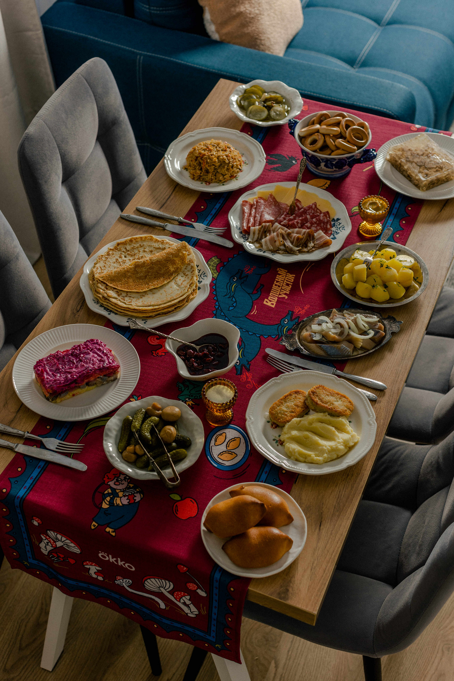 Специально к старту нового сезона «Самокат» и Okko создали тематическую подборку «Как получить скатерть-самобранку» по мотивам русской кухни. Там будут представлены чудо-пирожки, холодец-молодец, хрустящие огурчики, блины-колдуны, котлеты с пюре, борщ, рыба, а еще различные виды мяса, салаты, сыры, колбасы и другие блюда. Пользователи «Самоката», заказавшие товары из подборки на сумму от 300 рублей в Москве и Петербурге с 5 ноября по 2 декабря, смогут поучаствовать в розыгрыше лимитированной полутораметровой скатерти из легкой льняной ткани.