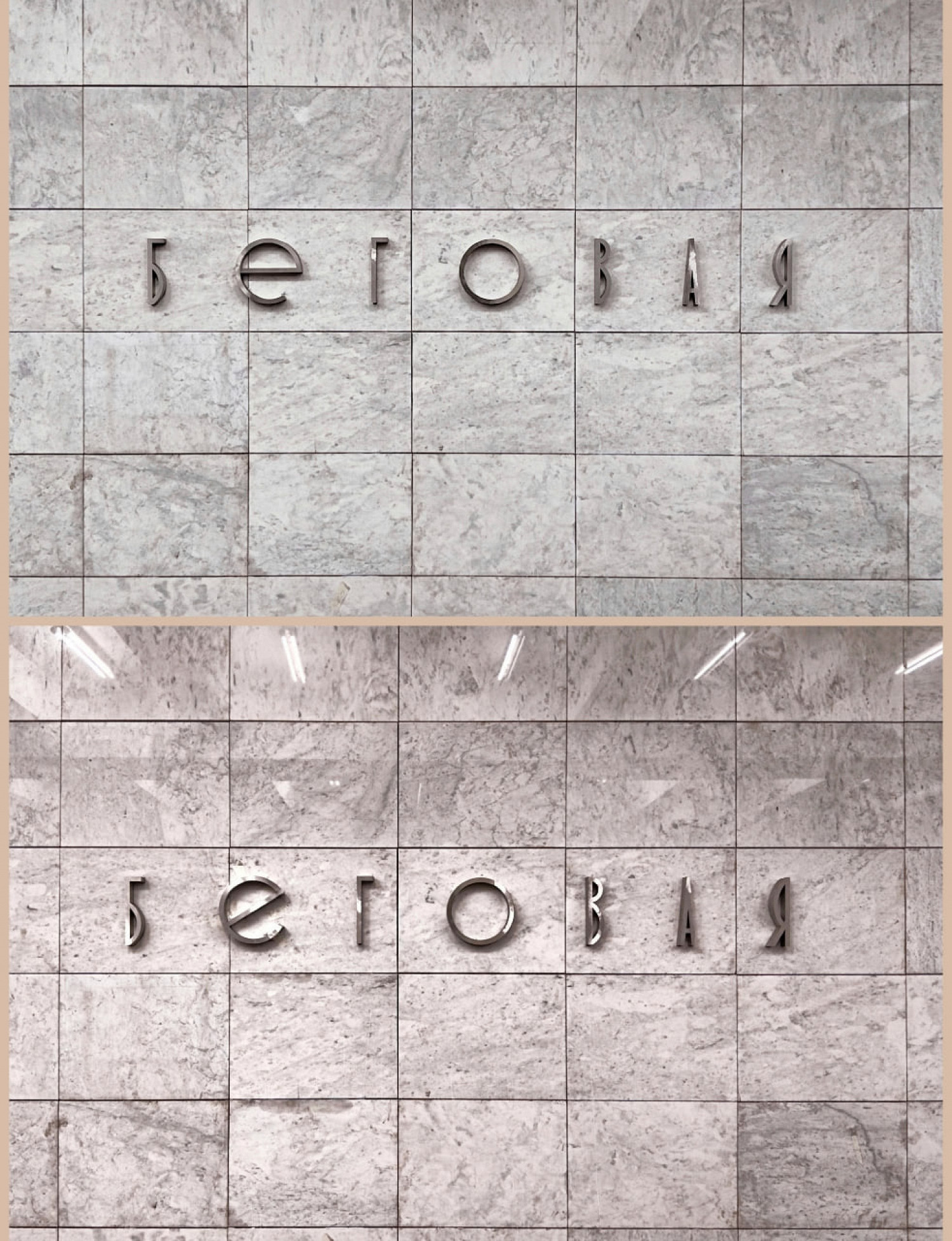 Как пишет «Москвич Mag», буква в названии станции всегда была под наклоном, но несколько лет назад ее поставили в прямое положение. С тех пор городские активисты добивались возвращения исторического наклона литеры.