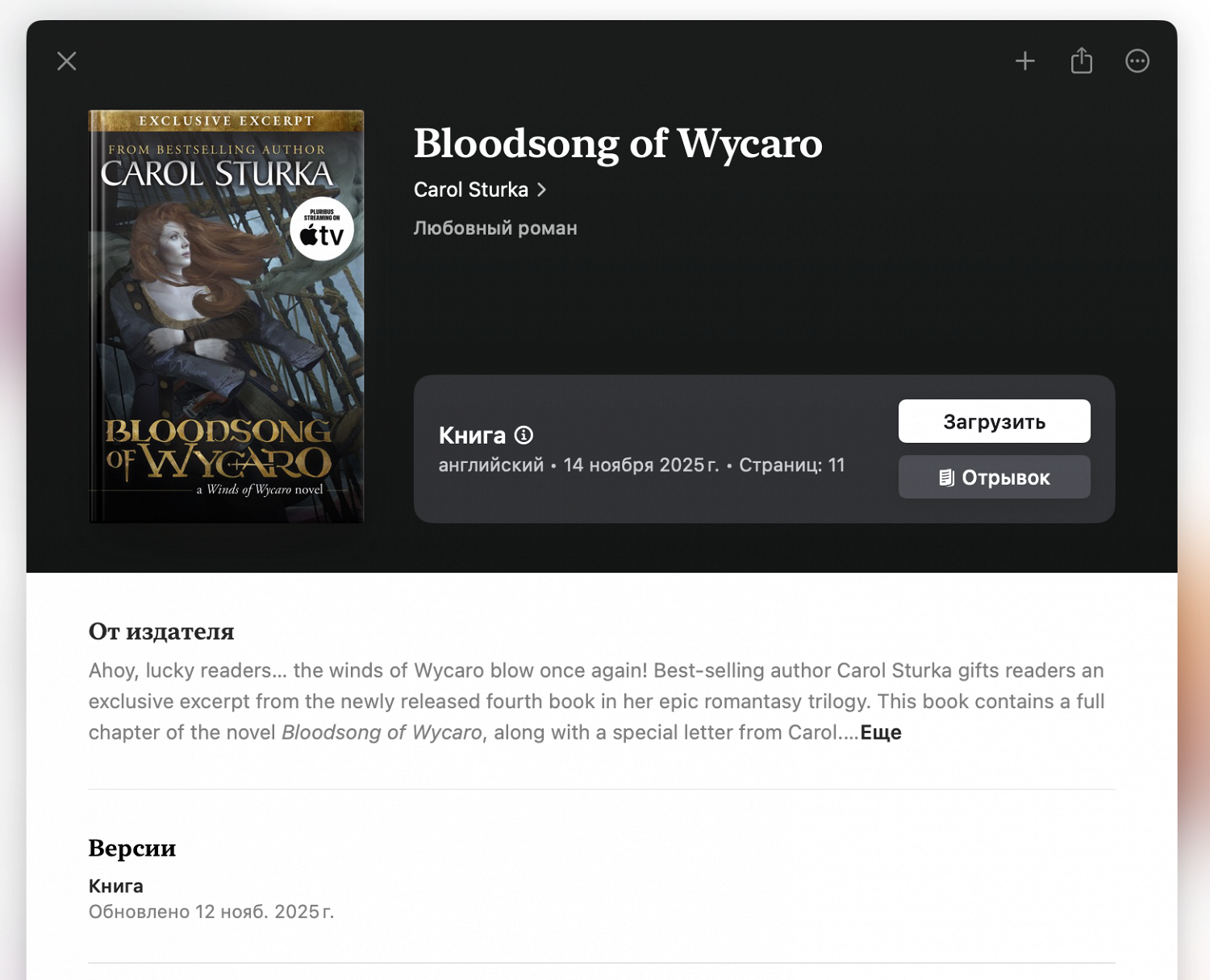 Apple выпустила «Песнь крови Уайкаро» («Bloodsong of Wycaro») — книгу, которую написала главная героиня сериала «Из многих» («Pluribus») Винса Гиллигана. Для скачивания доступна 11-страничная глава и письмо от персонажа Рии Сихорн.