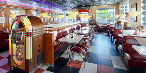 Beverly Hills Diner на Сретенке, 1, открылся в 2010 году. Его главной отличительной чертой стал интерьер, копирующий американские дайнеры из 50-х: красные диваны, официанты в ретроформе, старый музыкальный автомат.