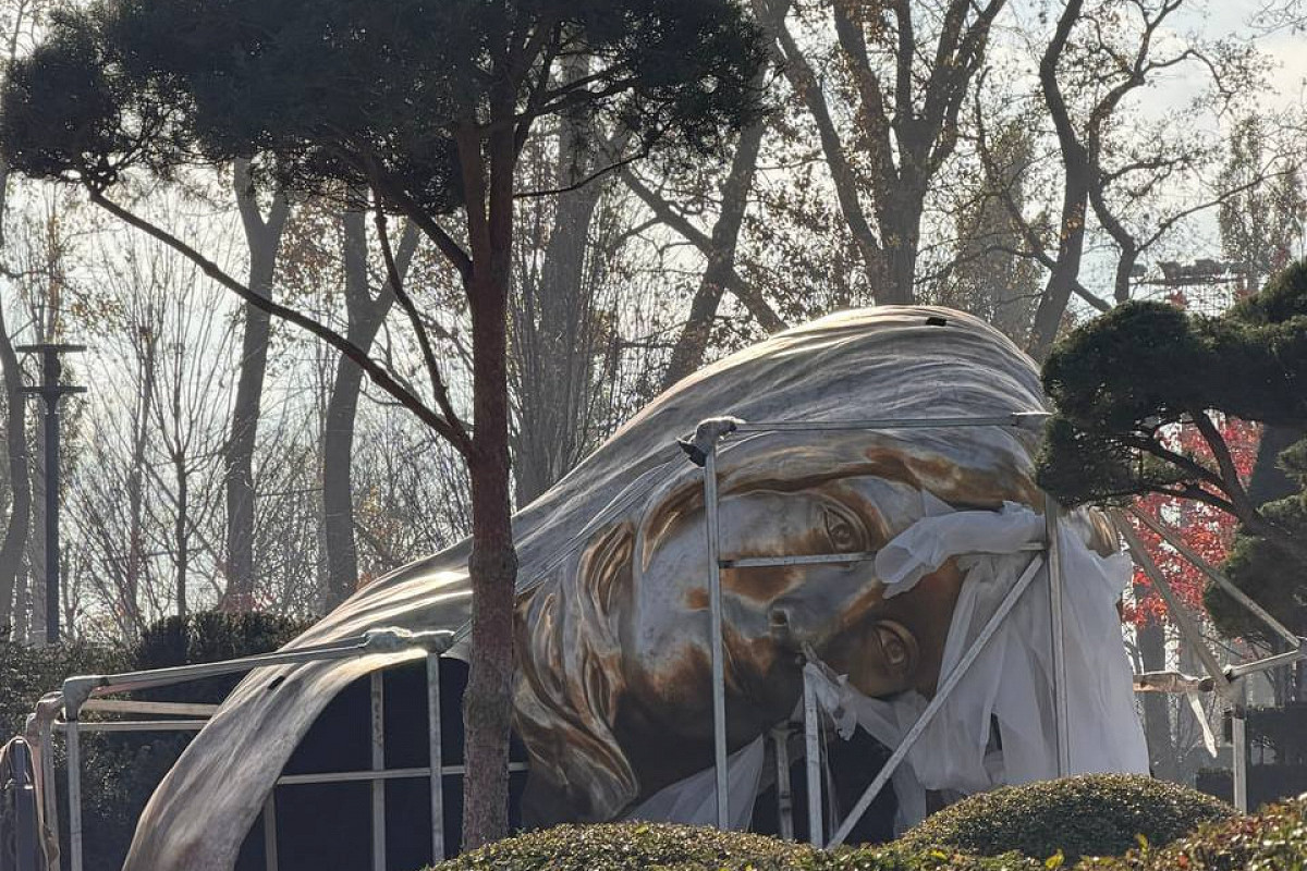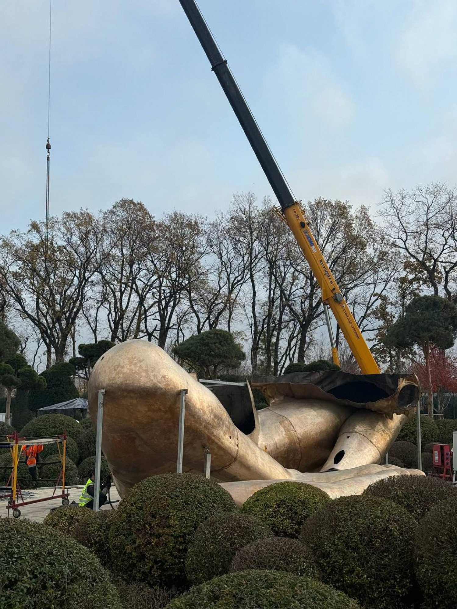 Предположительно, работа принадлежит известному итальянскому скульптору Лоренцо Куинну. Аналогичная скульптура входит в его серию «Сила природы». Сейчас арт-объект устанавливают рабочие.
