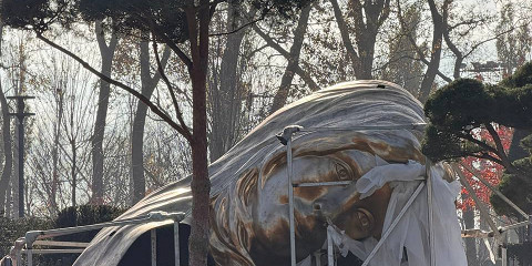 Предположительно, работа принадлежит известному итальянскому скульптору Лоренцо Куинну. Аналогичная скульптура входит в его серию «Сила природы». Сейчас арт-объект устанавливают рабочие.