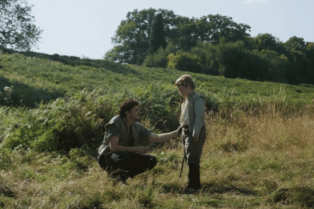 В опубликованном фрагменте Шекспир прощается с сыном. Мальчик просит взять его с собой, но отец говорит ему быть храбрым, остаться и присмотреть за матерью и сестрами. Прощание завершается крепкими объятиями.