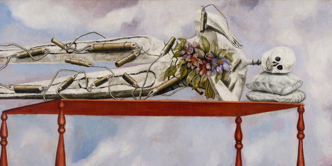 На картине Кало изображена спящей на деревянной кровати в колониальном стиле, будто парящей среди облаков. Она укрыта золотистым одеялом, а вокруг нее переплетаются вьющиеся растения и листья. Над кроватью расположен скелет, обмотанный динамитом.