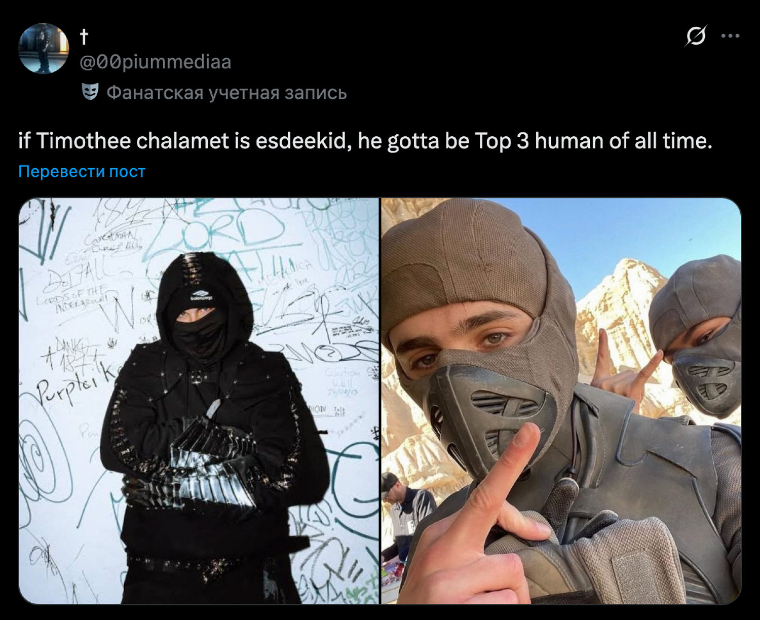 В сети обсуждают конспирологическую теорию, что анонимный британский рэпер EsDeeKid — это актер Тимоте Шаламе. Слухи возникли после того, как поклонники обнаружили ряд совпадений в биографиях артистов.
