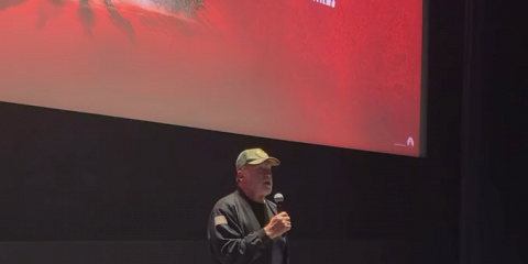Гостей доставили на студию на двух автобусах. Им показали боевик «Бегущий человек», в оригинальной версии которого сыграл сам Шварценеггер. Перед сеансом он отметил, что гордится фильмом 1987 года, но всегда верил, что его можно сделать еще лучше, хотя ремейки он не очень любит.
