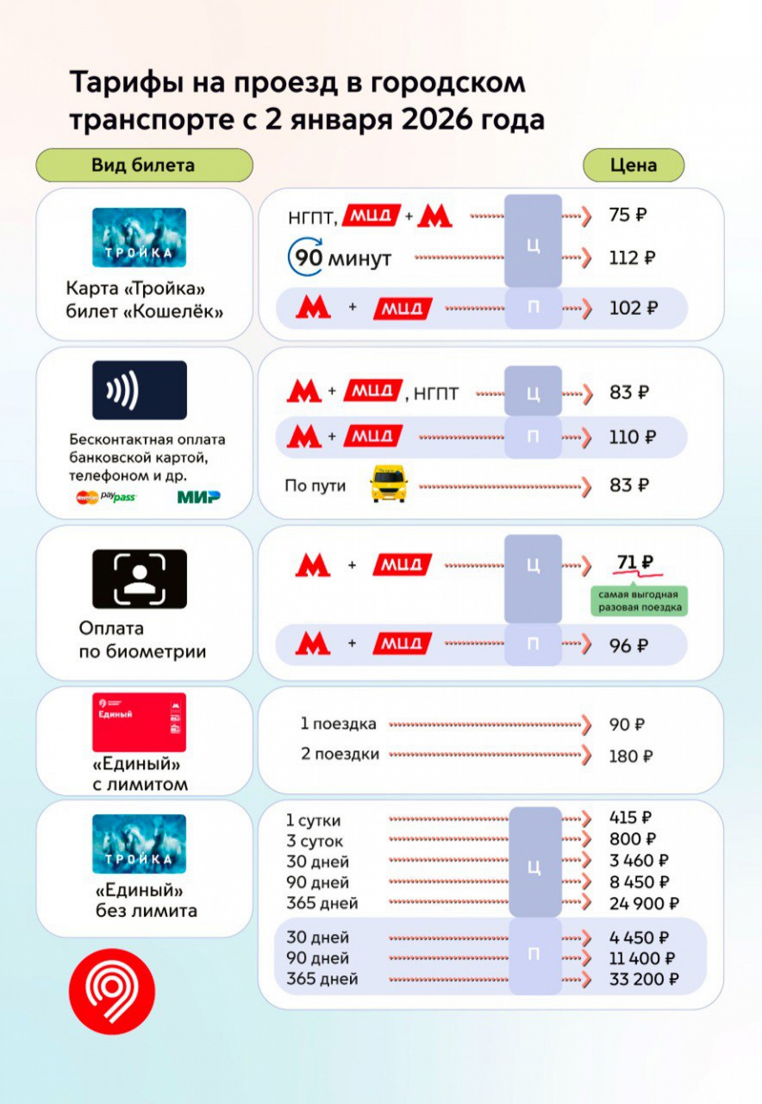 С 2 января 2026 года в Москве вырастут тарифы на проезд в общественном транспорте. Об этом сообщает Дептранс столицы.