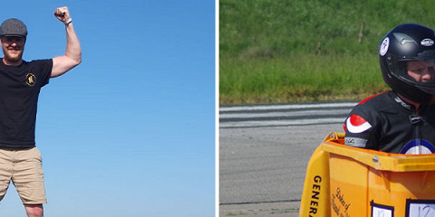 «В декабре я обнаружил в гараже запасной двигатель от мотоцикла Suzuki — он остался после того, как я продал байк, — и решил: почему бы не сделать это сейчас. Много вечеров я тренировался на низких скоростях, потому что с устойчивостью реально проблемы, но в день заезда все окупилось», ― поделился изобретатель.
