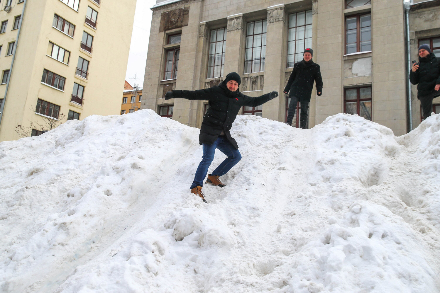 Недавно в Москву вернулась Миусская дюна — высокий сугроб, который появляется в одноименном переулке, когда сотрудники городской службы туда свозят снег с других улиц района.