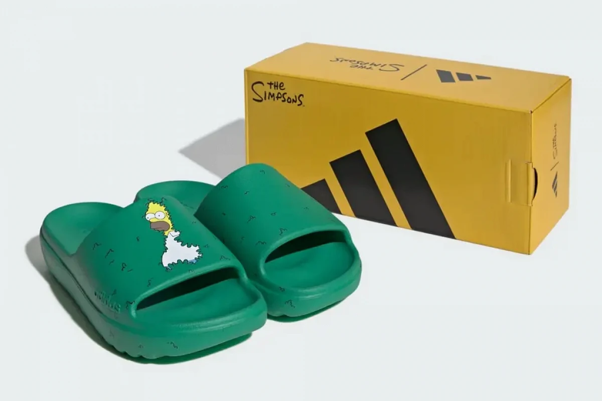 Обувь выполнена в  зеленой палитре, ассоциирующейся с травой, на ней разместили изображение Гомера. Это забавный и удобный вариант шлепанцев для поклонников серии, отмечает Hypebeast.