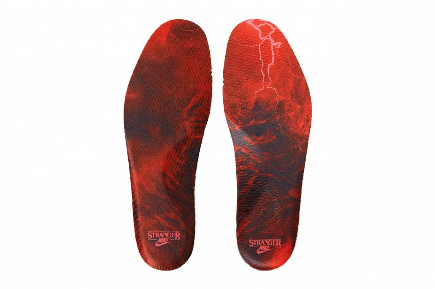 Логотип на язычке, стельке и пятке перевернут — этот прием уже использовался в предыдущей коллаборации (Stranger Things x Nike Dunk Low), он отсылает к зеркальности Изнанки.
