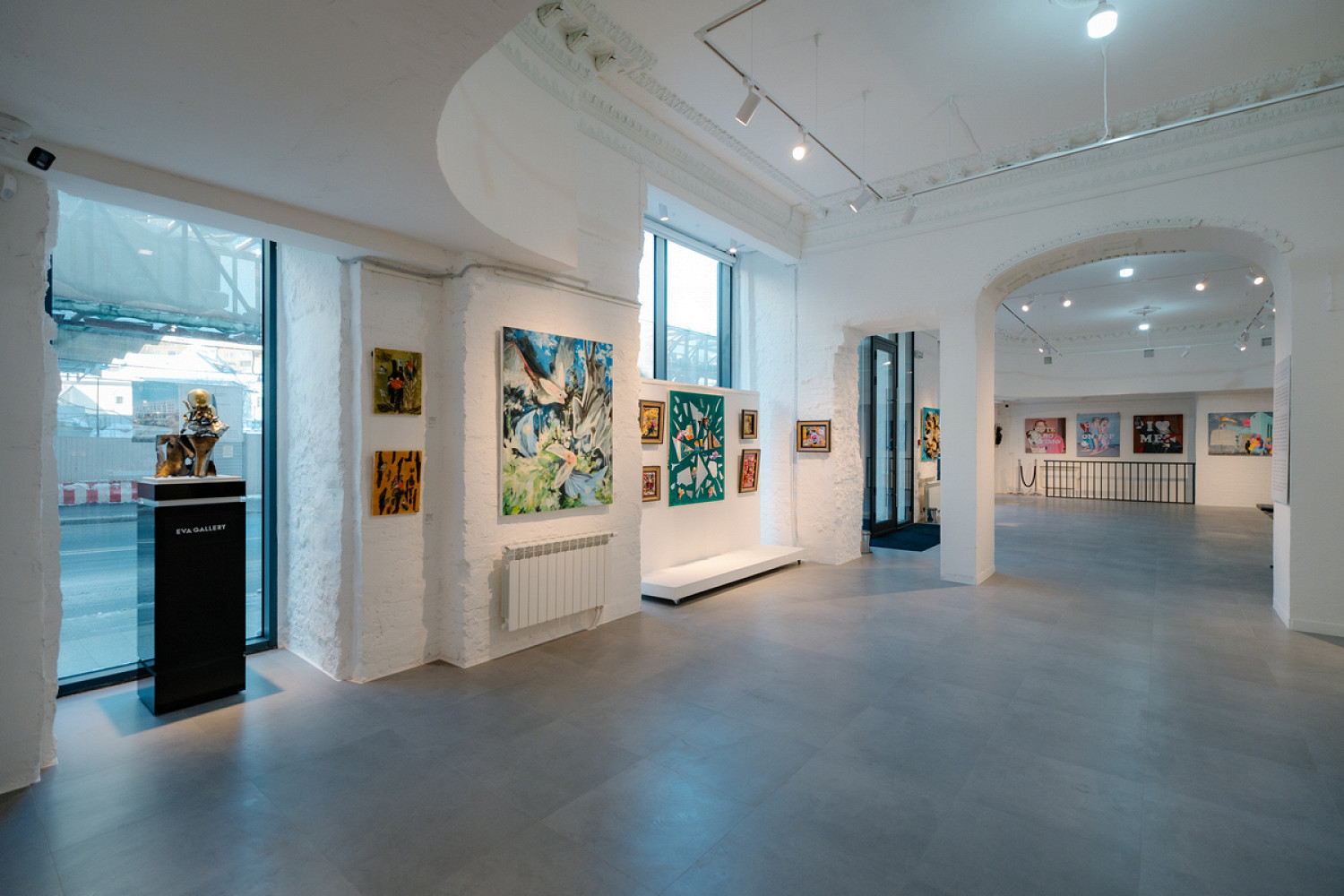 Выбор адреса для Eva Gallery не случаен: на рубеже XIX–XX веков на Остоженке, 5, располагались квартиры и мастерские московской интеллигенции. «Эта улица всегда привлекала людей, для которых важны смысл и свобода мысли. Архитектура новой галереи была разработана так, чтобы создать анфиладное выставочное пространство со светлыми стенами, которые позволяют искусству существовать вне привычных рамок и стереотипов», ― отметили в Eva Gallery.