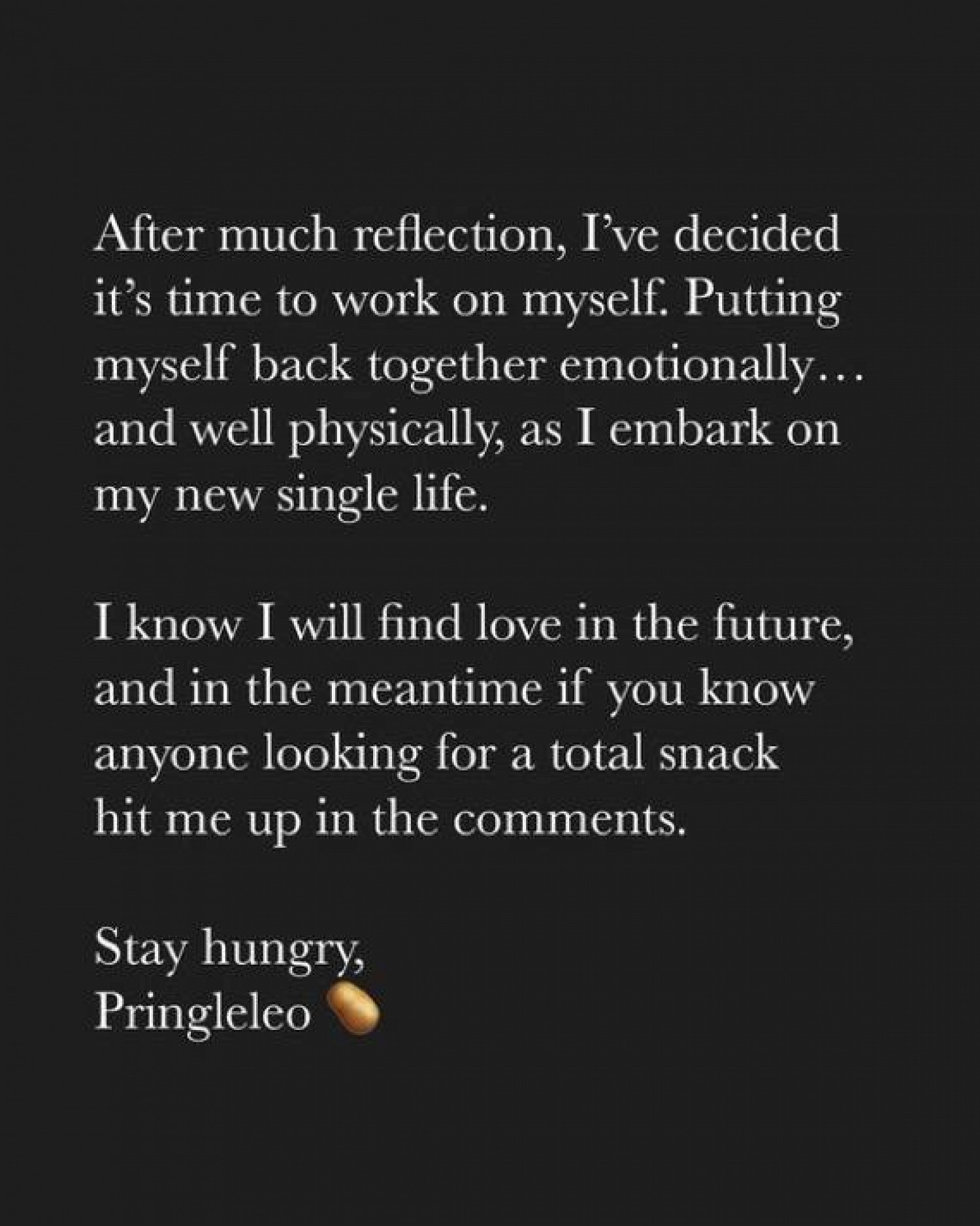 «После долгих раздумий я решил, что пришло время поработать над собой — собрать себя обратно воедино в эмоциональном плане… и, конечно, в физическом, вступая в новую жизнь холостяка.