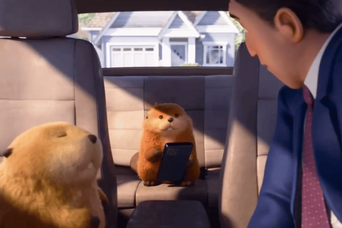 В опубликованном фрагменте бобры общаются с человеком с помощью голосового приложения на телефоне — гаджет разблокировали по лицу мужчины. Зверьки предупреждают его, что жизнь в опасности.