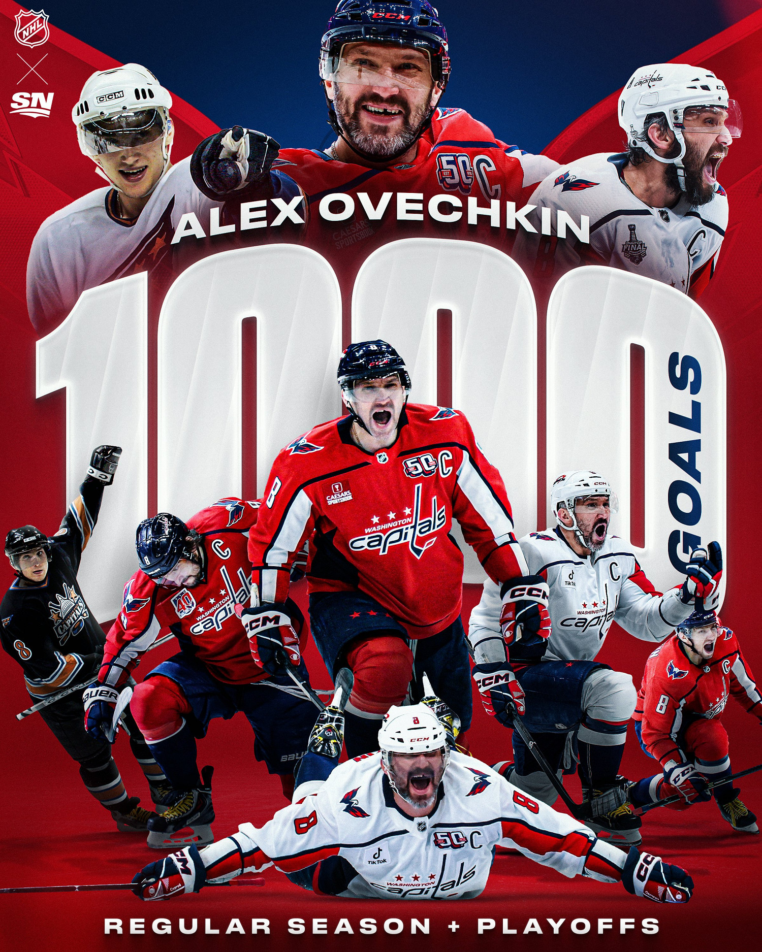 Овечкин стал вторым игроком в истории НХЛ после Уэйна Гретцки, достигшим отметки в 1000 голов в сумме регулярных сезонов и плей-офф. Капитан «Вашингтон Кэпиталз» является абсолютным рекордсменом лиги по голам в регулярных чемпионатах, имея на счету 923 шайбы. На его счету также 72 гола в Кубке Стэнли.