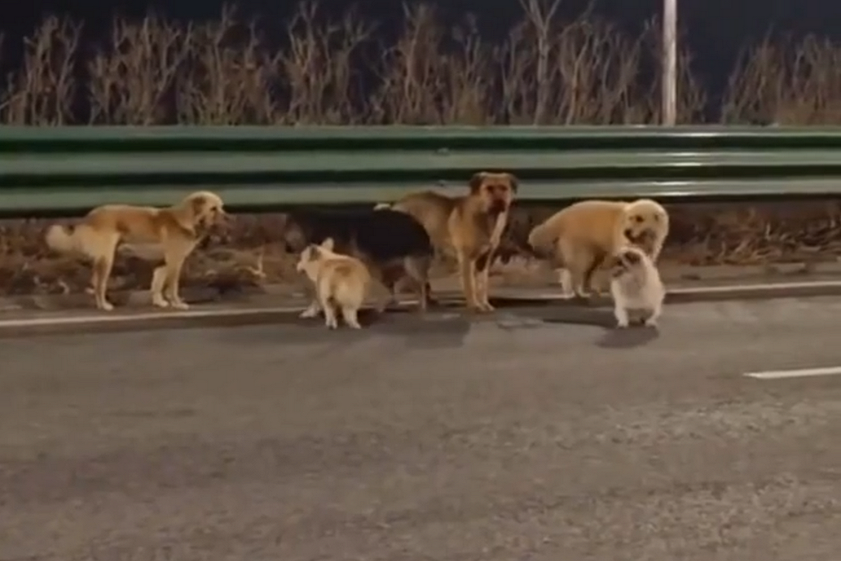 16 марта житель Чанчуня снял на видео, как семь собак идут вдоль оживленной трассы. Среди них были немецкая овчарка, корги, золотистые ретриверы, лабрадоры и пекинесы. На записи видно, как собаки держатся вместе: они окружают раненую овчарку, а корги, который идет впереди, постоянно оглядывается, чтобы никто не отстал.