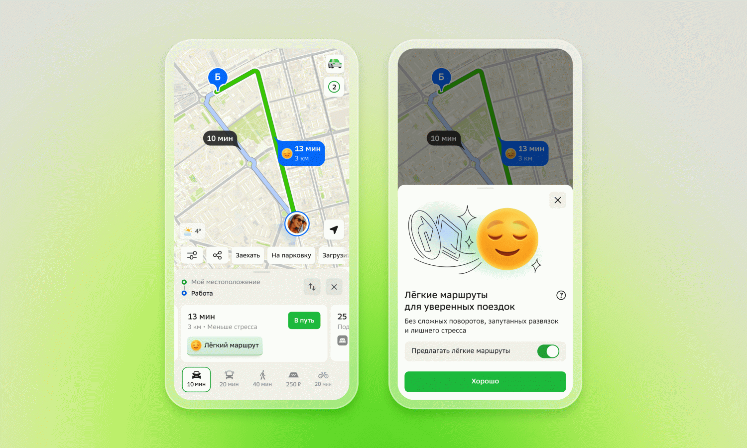 Режим «Легкий маршрут» уже доступен в мобильном приложении «2ГИС» на iOS и Android. Функция отображается на экране перед началом поездки. Ее можно отключить в настройках.