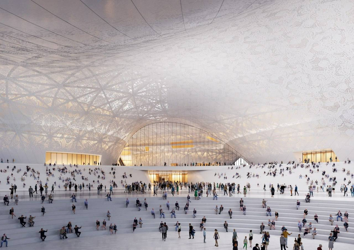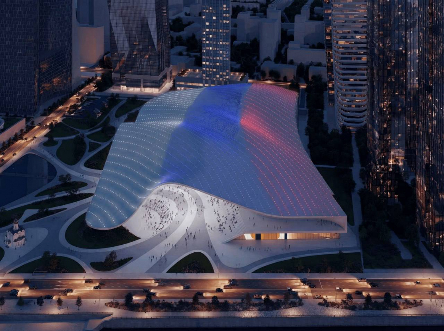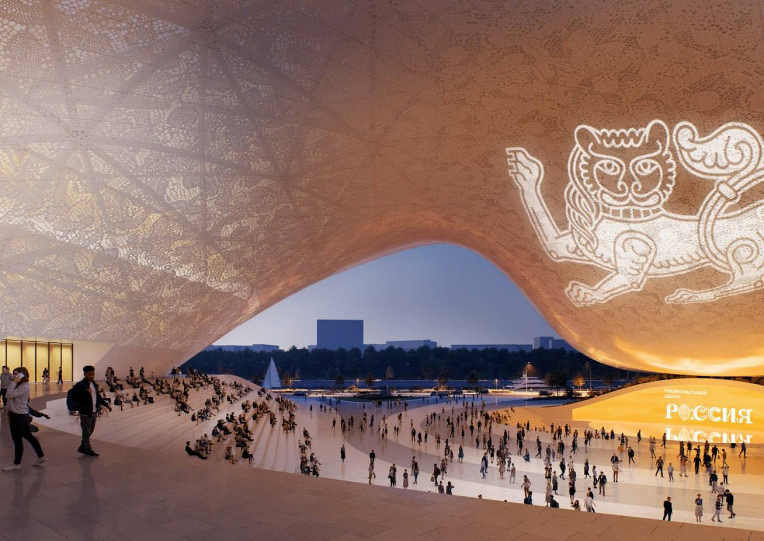«Открытость, визуальная легкость, наполненность светом и воздухом — главные характерные черты проекта. Ключевой архитектурно-инженерной особенностью станет пространственная самонесущая кровля площадью около 60 тыс. квадратных метров, а акцентной деталью — мультимедийный фасад», — говорится в посте.
