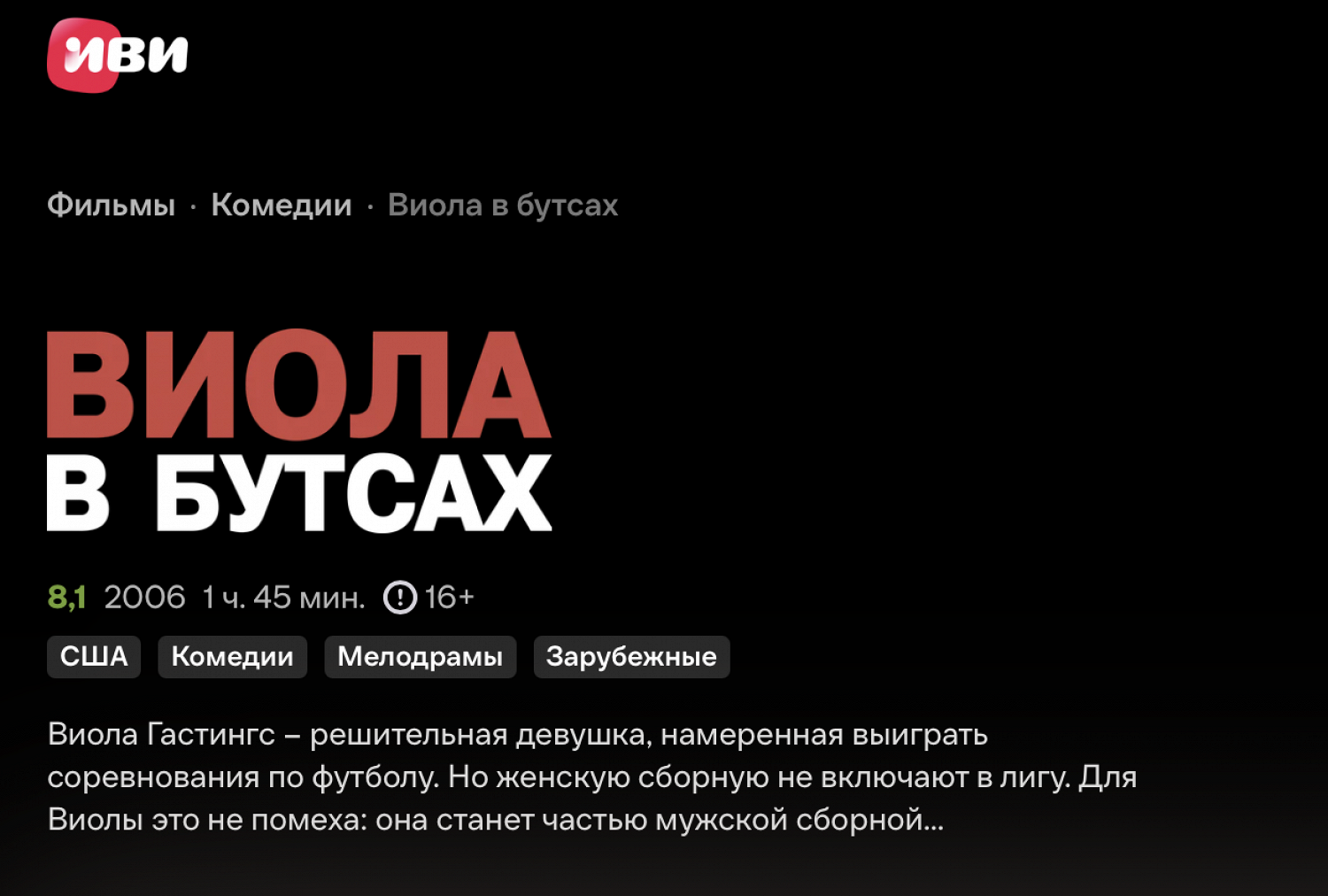 «Иви» переименовал фильм «Она — мужчина» в «Виола в бутсах»