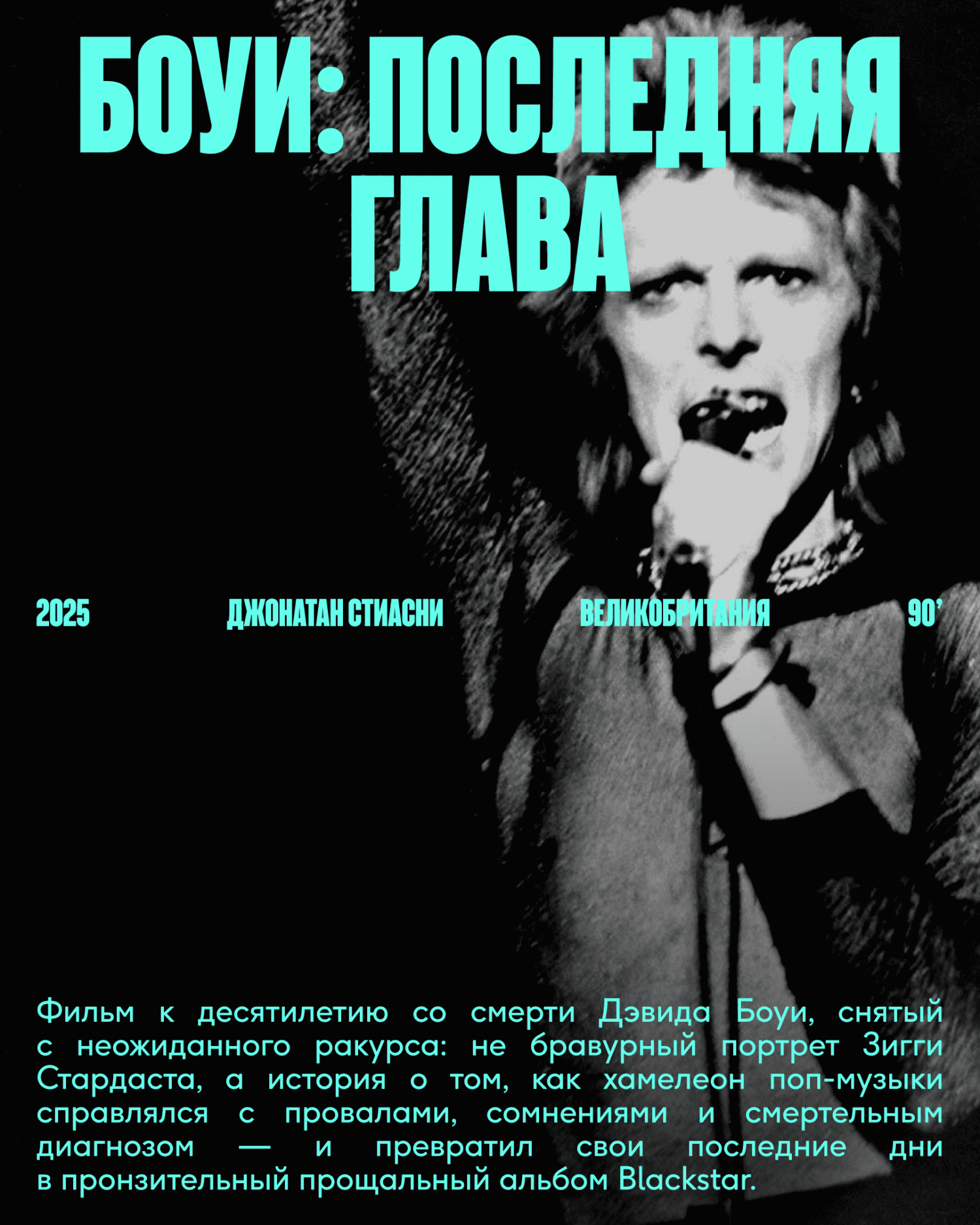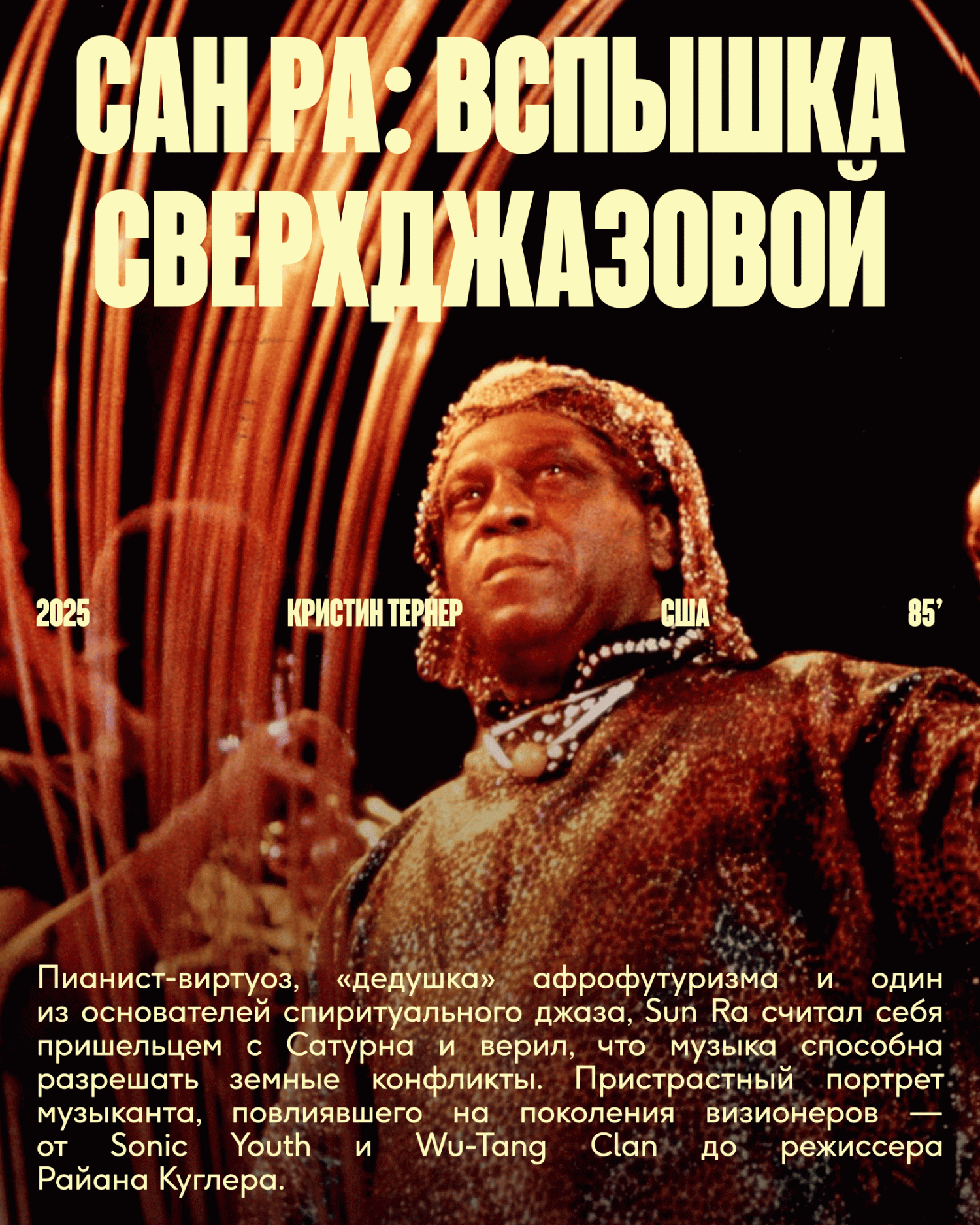 Неотъемлемая часть фестиваля — документальное кино о музыке. В этом году программу откроет картина Джонатана Стиасни «Дэвид Боуи: Последняя глава» — о возвращении музыканта на сцену в 2000-х, его творческих сомнениях, борьбе с болезнью и страхе смерти. В программу также вошли «Ломаный английский» о певице Марианне Фейтфул с Тильдой Суинтон и Ником Кейвом и «Сан Ра: вспышка сверхджазовой» — о «дедушке» афрофутуризма, повлиявшем на музыкантов от Aphex Twin до Sonic Youth.