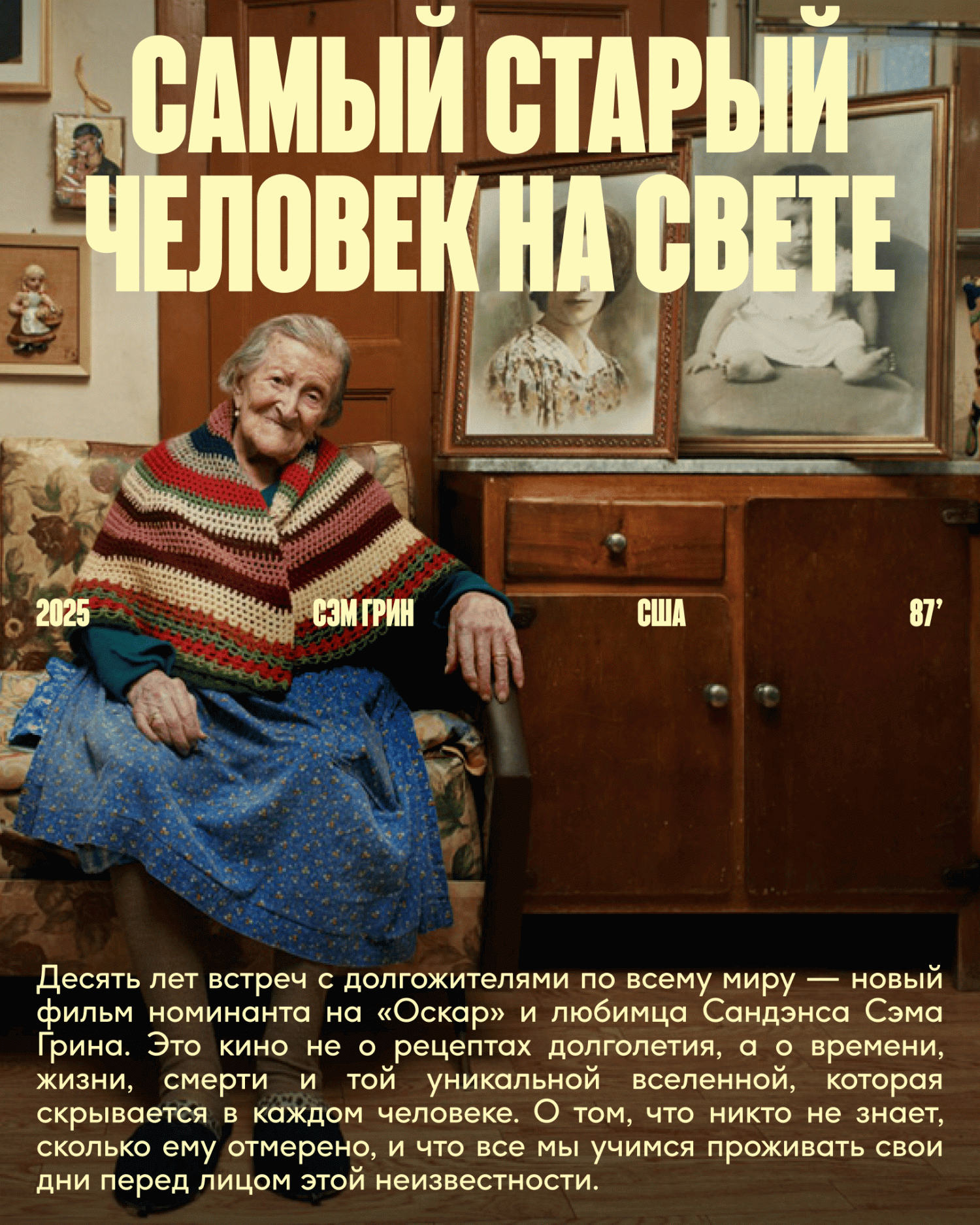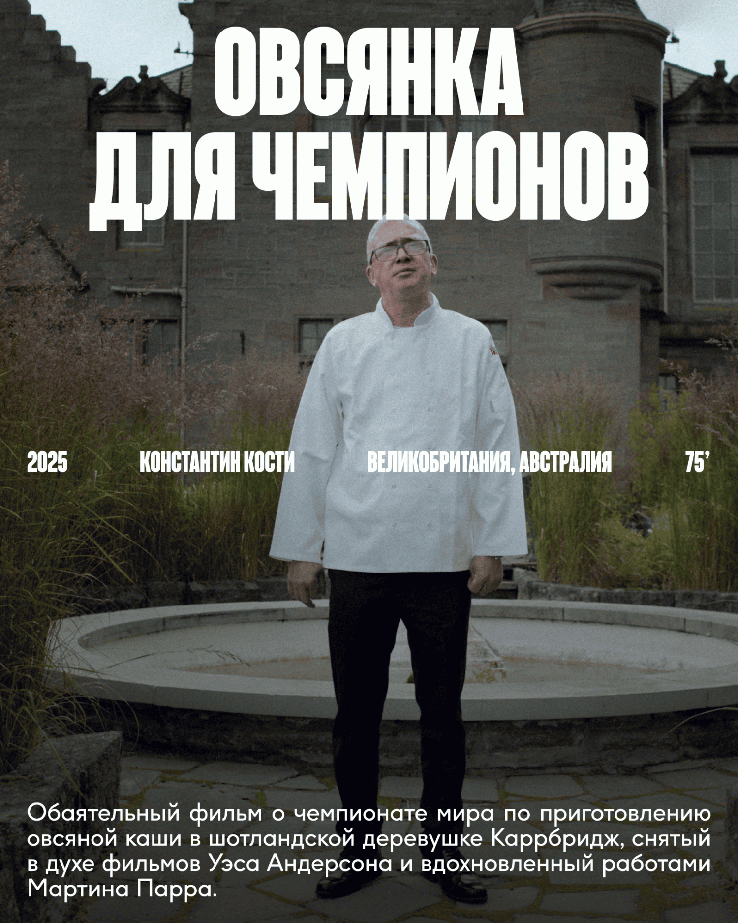 В фильме «Самый старый человек на свете» режиссер Сэм Грин («32 звука») десять лет путешествовал по миру, встречаясь с долгожителями и размышляя о жизни и смерти. «Овсянка для чемпионов» расскажет о чемпионате мира по приготовлению овсяной каши в Шотландии.