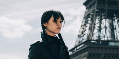 Netflix опубликовал первый кадр третьего сезона «Уэнсдей» — на нем героиня Дженны Ортеги стоит у Эйфелевой башни в Париже рядом с мотоциклом. Подпись под фото гласит: «Из Парижа с тревогой».