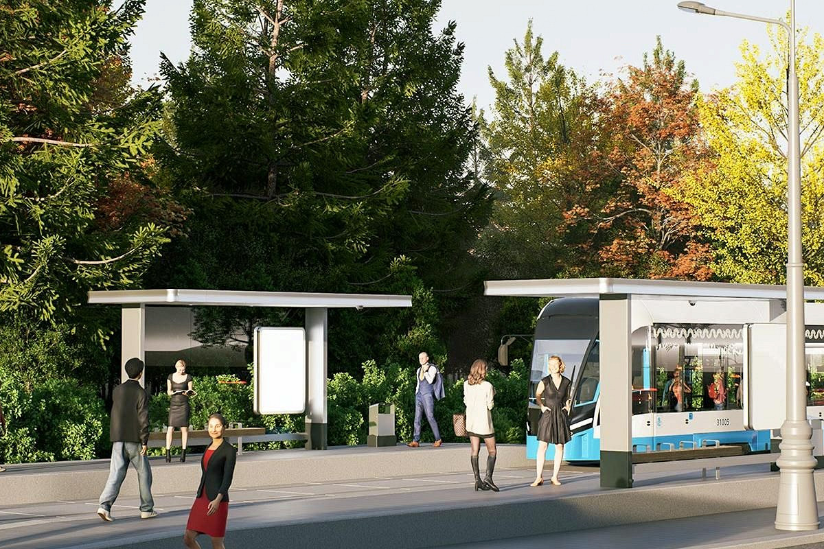 Новая трамвайная линия с пятью остановками пройдет обособленно от потока машин. На конечной остановке («Улица Сталеваров») обустроят разворотное кольцо, здание для отдыха водителей и организуют пересадку на городские и пригородные автобусы и электробусы.