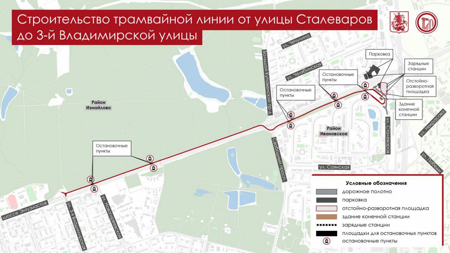 Протяженность новой линии составит около 4 километров. Маршрут пройдет из района Ивановское вдоль шоссе Энтузиастов до 3-й Владимирской улицы и присоединится к существующей трамвайной сети.