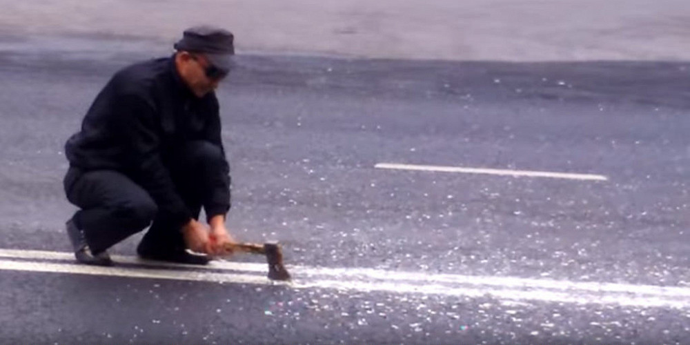 В сети появилось видео, где житель Тольятти пытается вырубить двойную сплошную полосу с помощью топора. На ролик обратило внимание местное издание Tolyatty.ru.