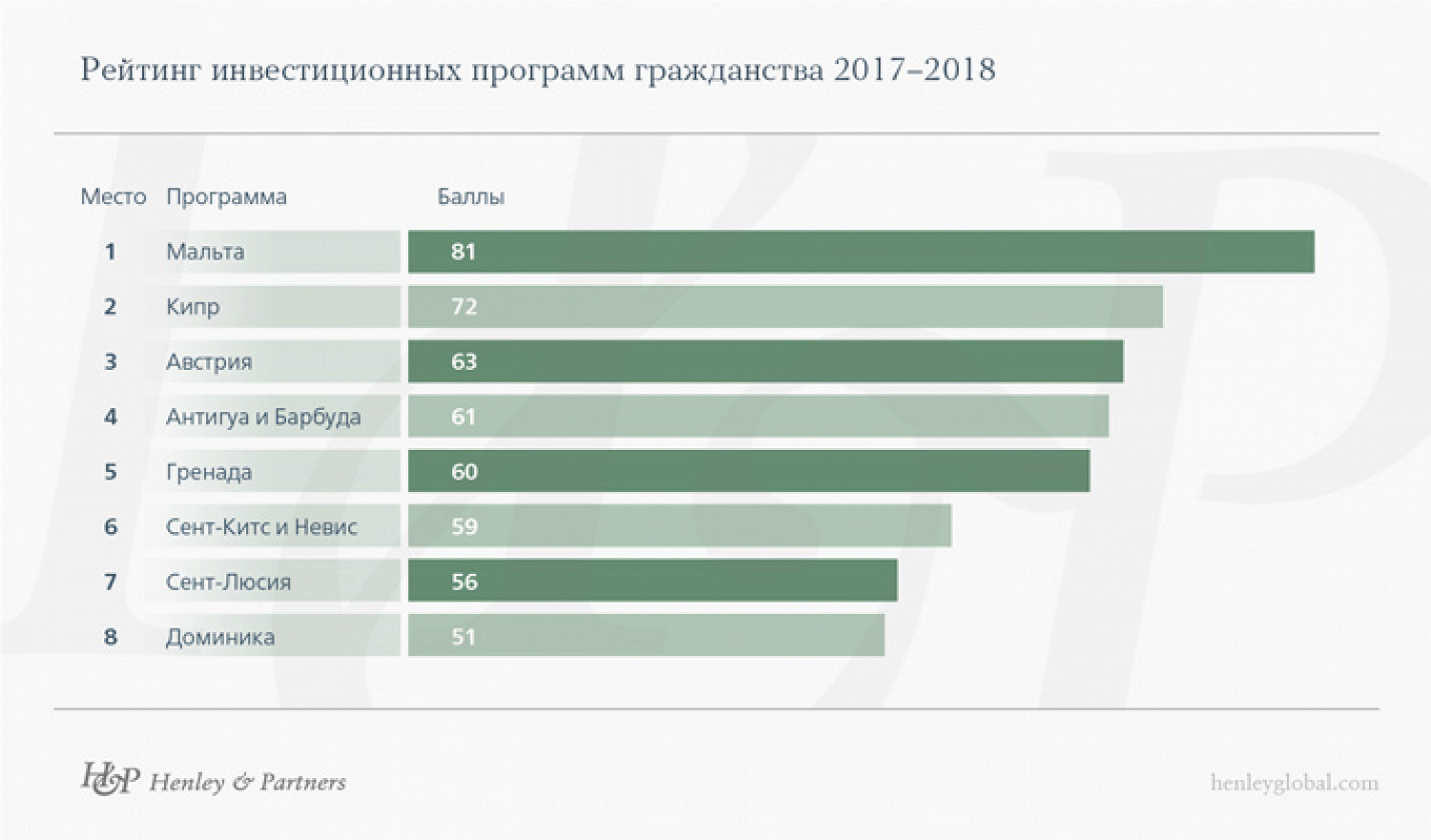 Мальтийский паспорт дает инвесторам право жить и работать в любой стране Евросоюза, а также путешествовать без визы в 167 странах мира. Для этого достаточно инвестировать в экономику Мальты 880 тысяч евро. Далее в списке расположились Кипр, Австрия, Антигуа и Барбуда, а также Гренада. Масштабных изменений в рейтинге по сравнению с прошлым годом не наблюдается: Австрия и Антигуа и Барбуда поменялись местами, а все остальные страны остались на своих местах.