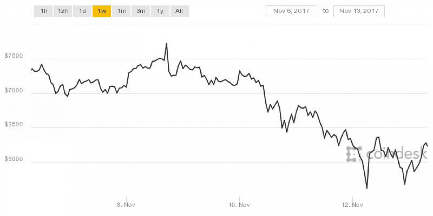 Утром 13 ноября курс биткоина составлял 5605 долларов, однако на момент публикации заметки вырос до 6222 долларов. Падение началось уже на следующий день после исторического рекорда — к 9 ноября курс обвалился сразу на 1000 долларов, — а за выходные только усилилось.