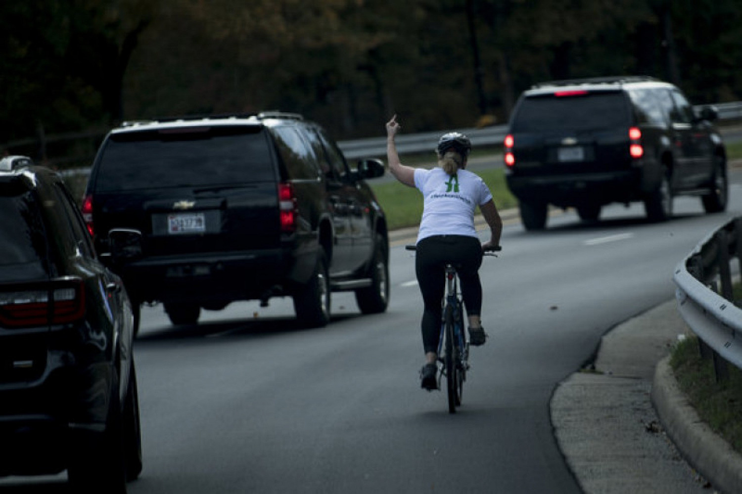 В начале ноября Брискман ехала на велосипеде и показала средний палец президентскому кортежу, проезжающему рядом. Ее жест запечатлел фотограф Брендан Смиаловский.