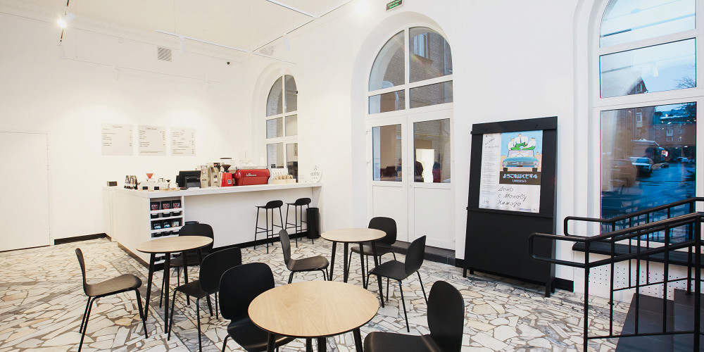 После ремонта на фасаде кинотеатра появилась удобная навигация, вывеска в фирменном стиле «Москино» и лайтбоксы для афиш. В фойе перекрасили стены, установили лавки и переоборудовали фуд-корт. Также здесь установили корнер для продажи постеров и киноафиш.