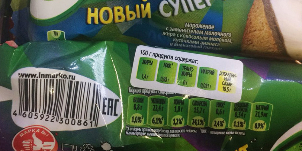 В России начал работать проект добровольной маркировки продуктов «Светофор», в рамках которого производители могут разместить на упаковке продукции информацию о содержании трансжиров, жиров (в том числе насыщенных жирных кислот), соли и добавленного сахара. Об этом сообщают «Ведомости».