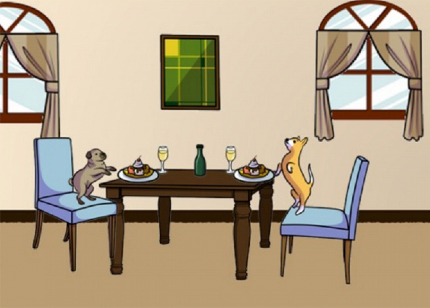 В результате в группу смешных картинок чаще всего попадали изображения, на которых один или несколько объектов были в необычном для них контексте. Например, на одном из коллажей животные обедали, сидя за столом, а человек сидел в собачьей корзинке.