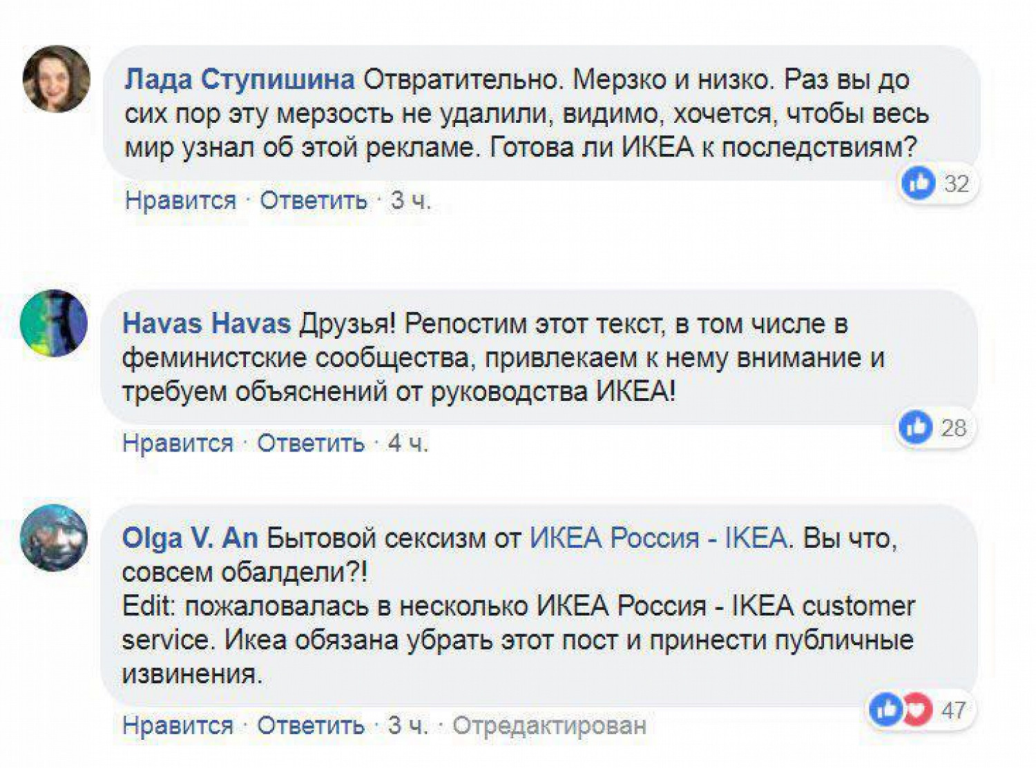 Пост появился в сообществе IKEA 16 октября, через несколько дней компания написала комментарий о том, что он носит исключительно юмористический характер, а после и вовсе удалила сообщение.