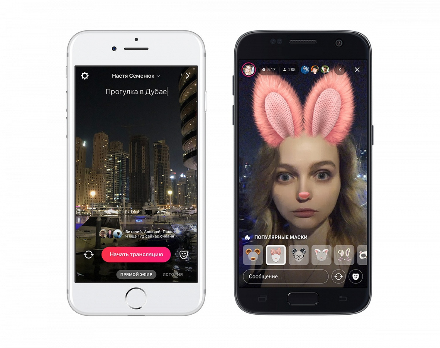 Раньше трансляции можно было создавать только в отдельном приложении VK Live или веб-версии. Теперь для этого нужно просто открыть вкладку «Прямой эфир» в камере историй или нажать на круглый значок трансляции в форме создания публикации. Также «ВКонтакте» добавила возможность использовать в прямом эфире маски.