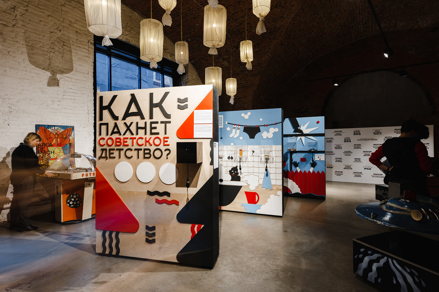 «Школа» — это мокрый мел, подгоревшая каша школьного завтрака и книжные страницы. «Гастроном» ассоциировали со свежей выпечкой, газировкой с сиропом и мороженым. Для зоны «Двор» имитировали запах гудрона, который, по утверждению организаторов выставки, использовался советскими детьми в качестве жевательной резинки.