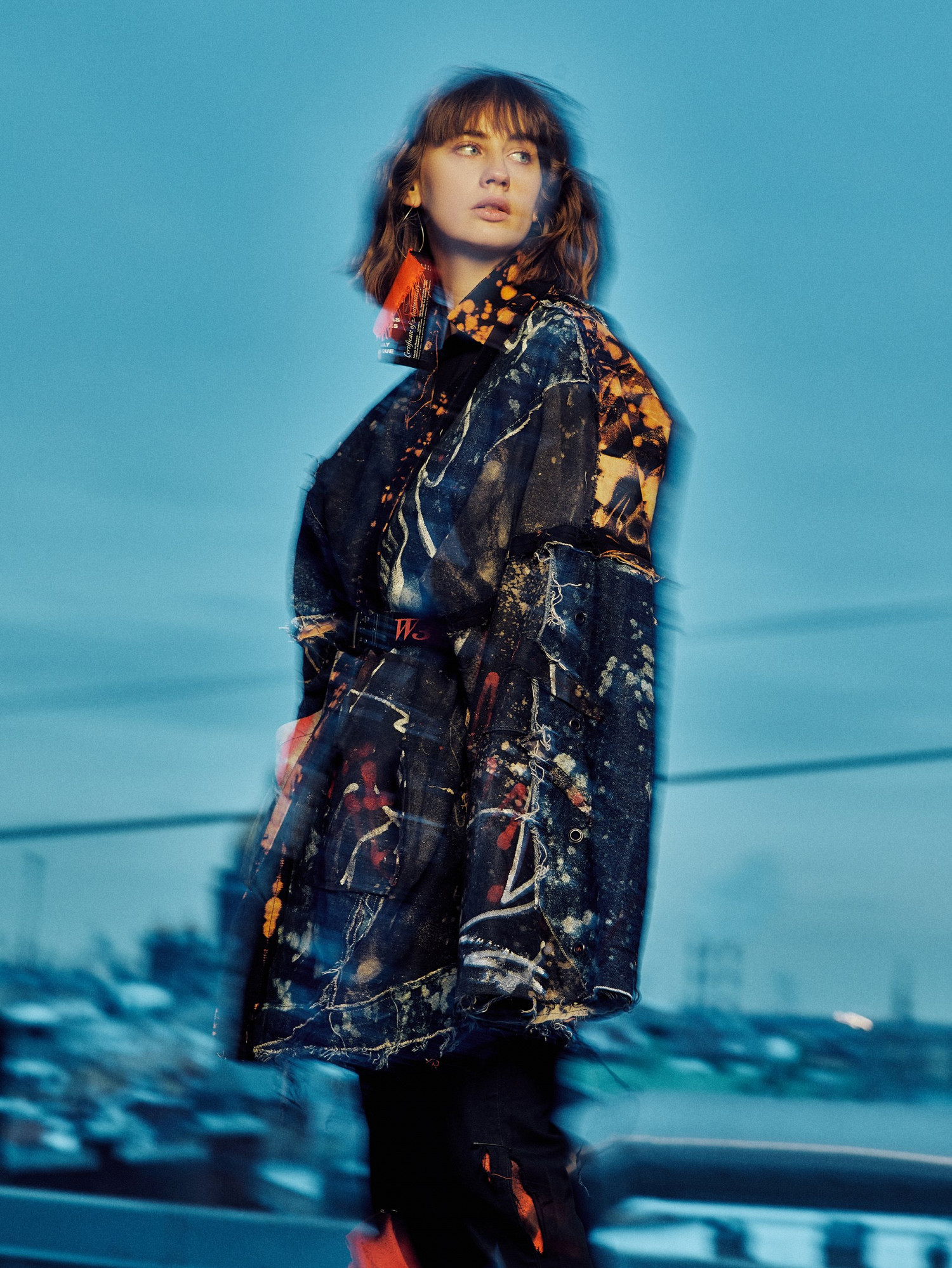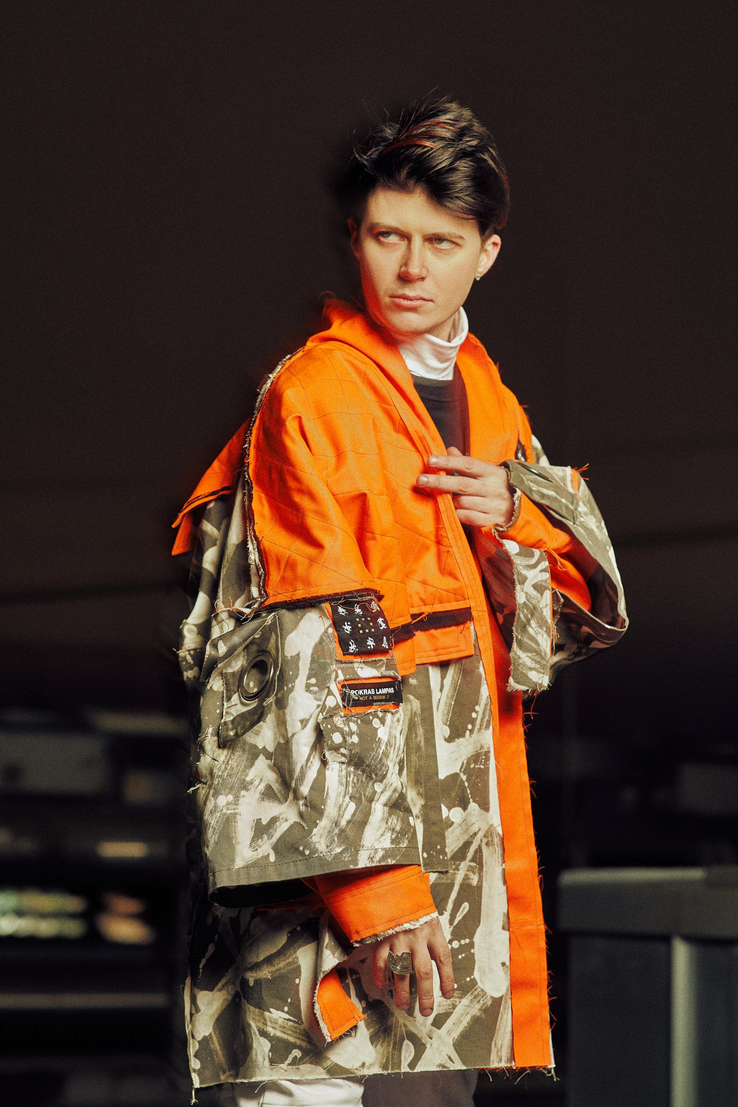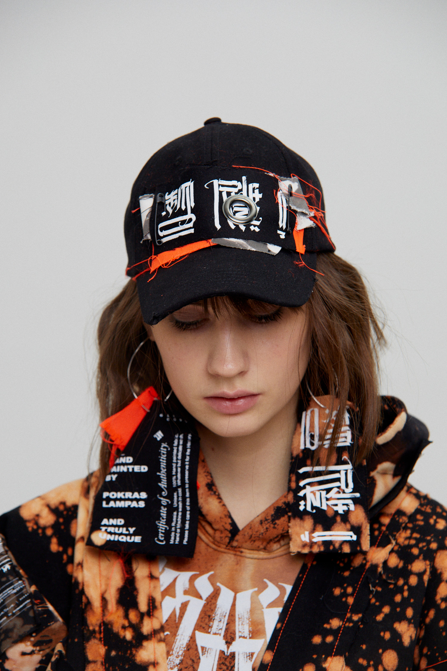 «Я считаю важным показать зрителю не просто абстрактные позиции одежды, но связь места и времени, руки художника, краски, полотна и объекта, в который все трансформируется и сливается. Каждая вещь — связь искусства и моды, экспериментов и традиций, сама по себе является манифестом: вручную расписанная ткань, вырезанные лоскуты из рабочей робы, вытравленный деним, шелкография — все вместе собирается в уникальную композицию, сшивается, закрепляется люверсом и объединяется в цельный образ и высказывание», — прокомментировал Лампас коллекцию.