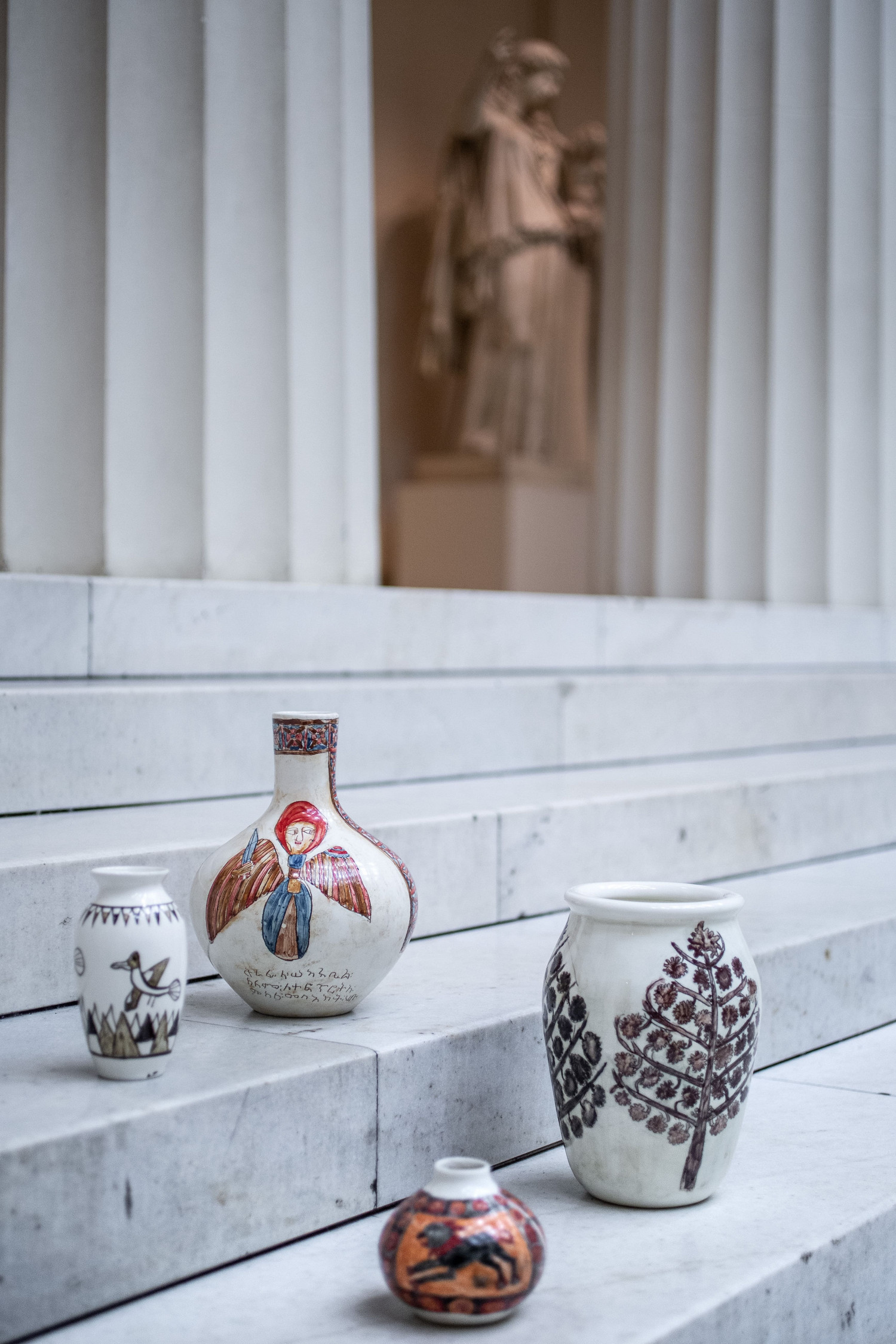 Художники из мастерской каждый понедельник приходили в ГМИИ имени Пушкина и работали над рисунками по мотивам памятников искусства как древних, так и современных. На основе этих эскизов участники проекта разработали сувениры (сумки, вазы, посуда), которые можно купить, чтобы помочь мастерской «Особая керамика».