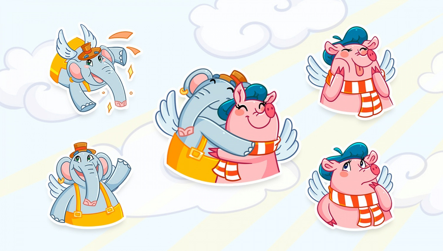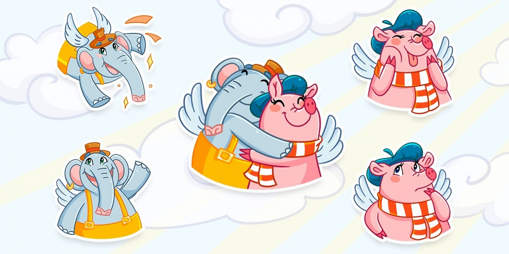 Героями стикерпака, который можно будет купить в течение всего лета за 63 рубля, стали свинка Софи и слон Прабу — персонажи серии мультфильмов «Летающие звери», созданного несколько лет назад анимационной студией «Да» совместно с пациентами фонда AdVita.